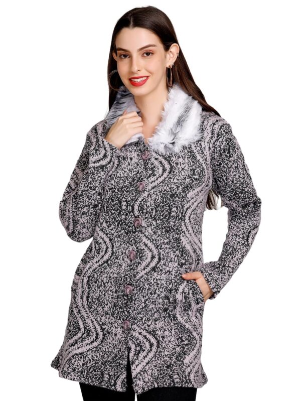 eWools Women's winterwear Woolen Fur Collar Cardigan Sweater by Prixsa.com