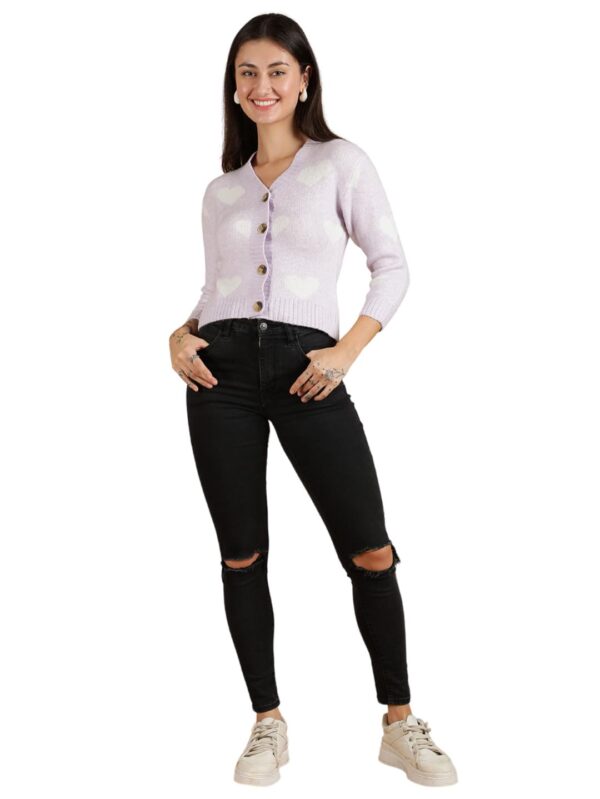Dadu Dayal Women Woolen Round-Neck Self Design Cardigan Sweater for Winter Wear Full Sleeves Crop Design by Prixsa.com