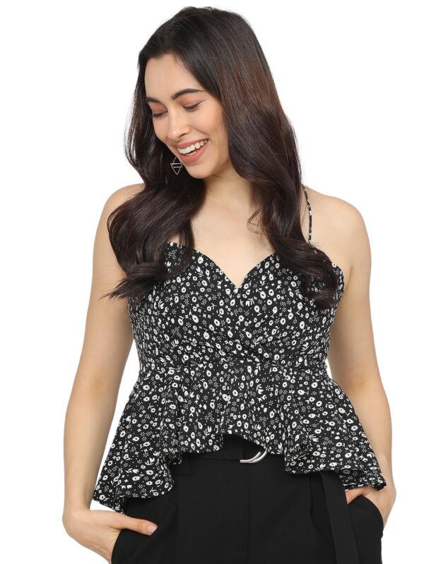 Tokyo Talkies Women's Floral Peplum Top | Shoulder Straps | Flirty & Feminine | Perfect for Day Outings & Brunches | Tops for Woman | Women Tops | Stylish Top by Prixsa.com