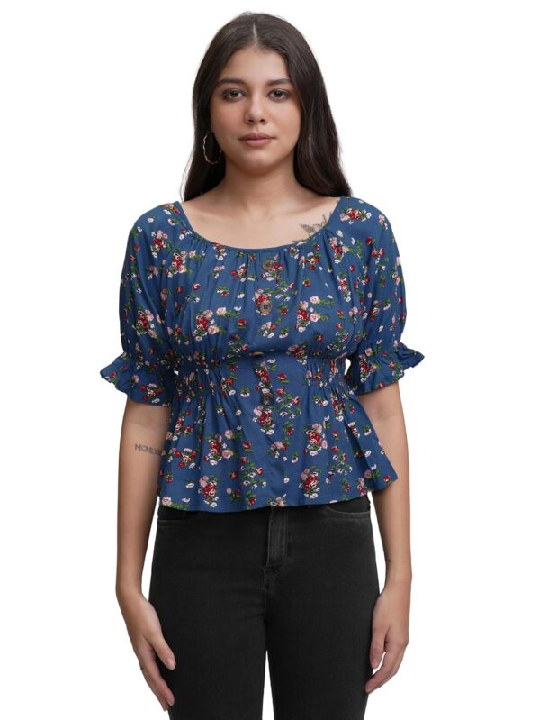 Tokyo Talkies Women's Floral Print Cinched Waist Top | Short Sleeves | Flattering & Fresh | Perfect for Casual Days & Outings | Tops for Woman | Women Tops | Stylish Top by Prixsa.com
