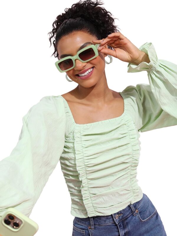 Tokyo Talkies Women's Long Sleeves Square Neck Self Design Tops| Stylish Casual wear by Prixsa.com