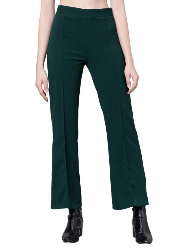 Tokyo Talkies Women's Regular Fit Bootcut Trousers | Stretchable Trousers | Casual Trousers| Mid-Rise by Prixsa.com