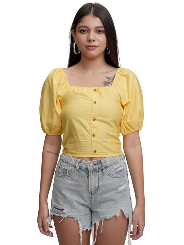 Tokyo Talkies Women's Puff Sleeves Shirt-Style Crop Top | Chic & Trendy | Perfect for Casual Outings & Weekend Brunches | Tops for Woman | Women Tops | Stylish Top by Prixsa.com