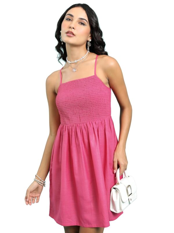 Tokyo Talkies Women's Sleeveless Shoulder Strap Self Design Dresses | Stylish| Casual by Prixsa.com