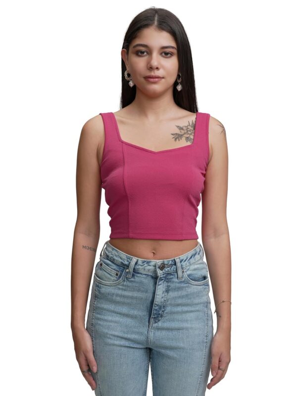 Tokyo Talkies Women's Round Neck Fitted Crop Top | Sleeveless | Chic & Versatile | Perfect for Casual & Layered Looks | Tops for Woman | Women Tops | Women Crop Top by Prixsa.com