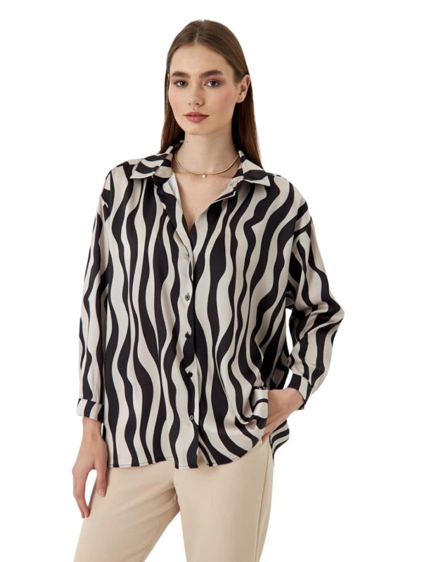 Whether you're dressing up for a formal event or adding a touch of class to your everyday look, this top is a versatile addition to your collection. Pair it with tailored pants, skirts, or jeans for a chic and polished ensemble. The unique design and attention to detail make this blouse a must-have for fashion-forward women.