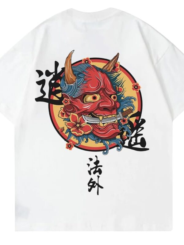 EPIKO Japanese Beast Design Art Unisex Baggy Oversized Back Print Oversized Tshirt | Trendy Back Print Cool White Oversized Tshirt for Men and Women by Prixsa.com