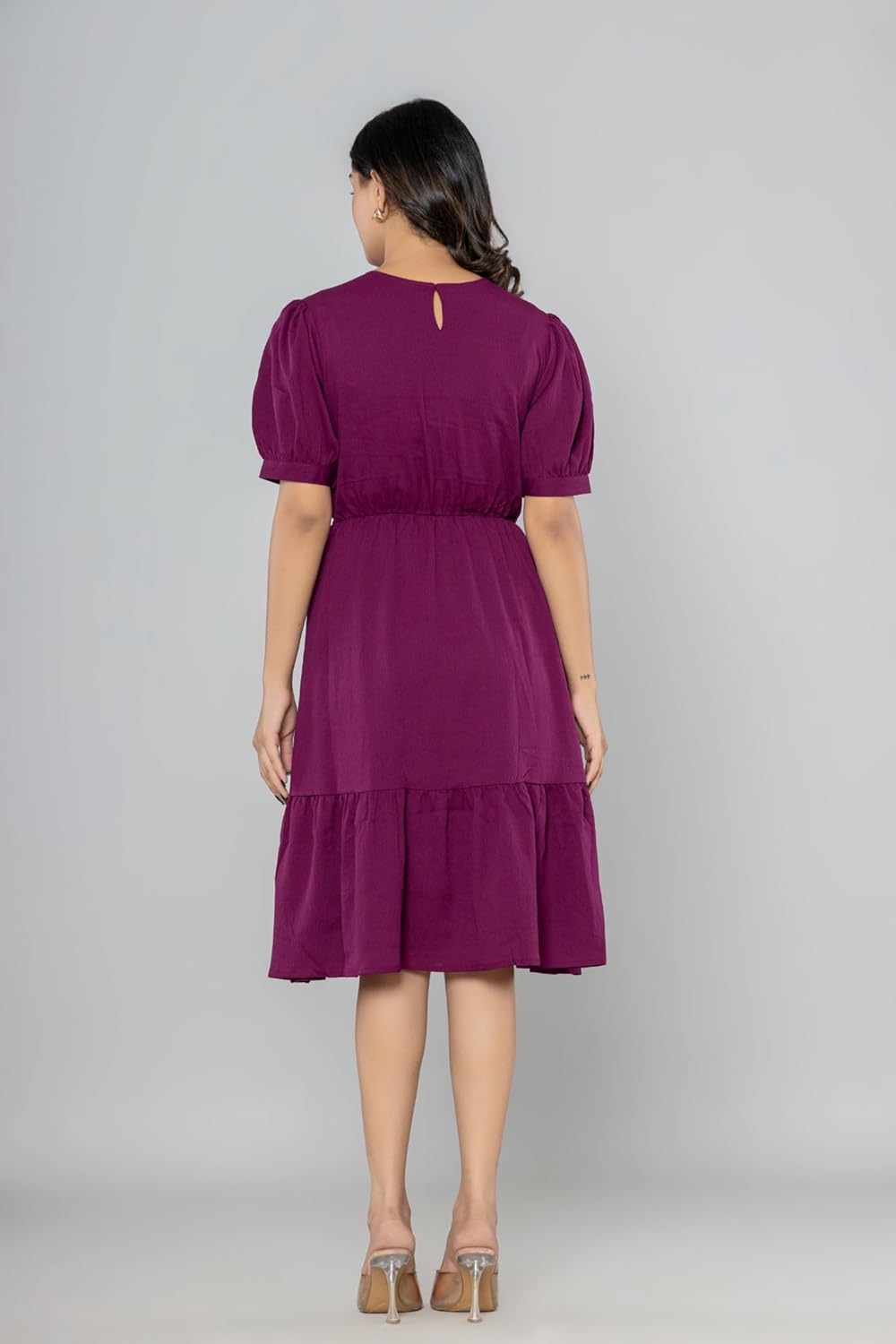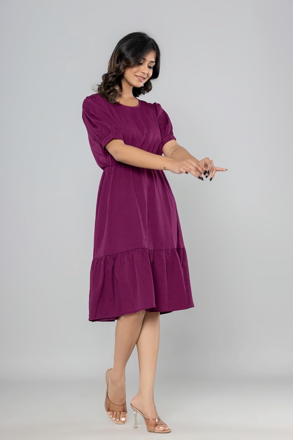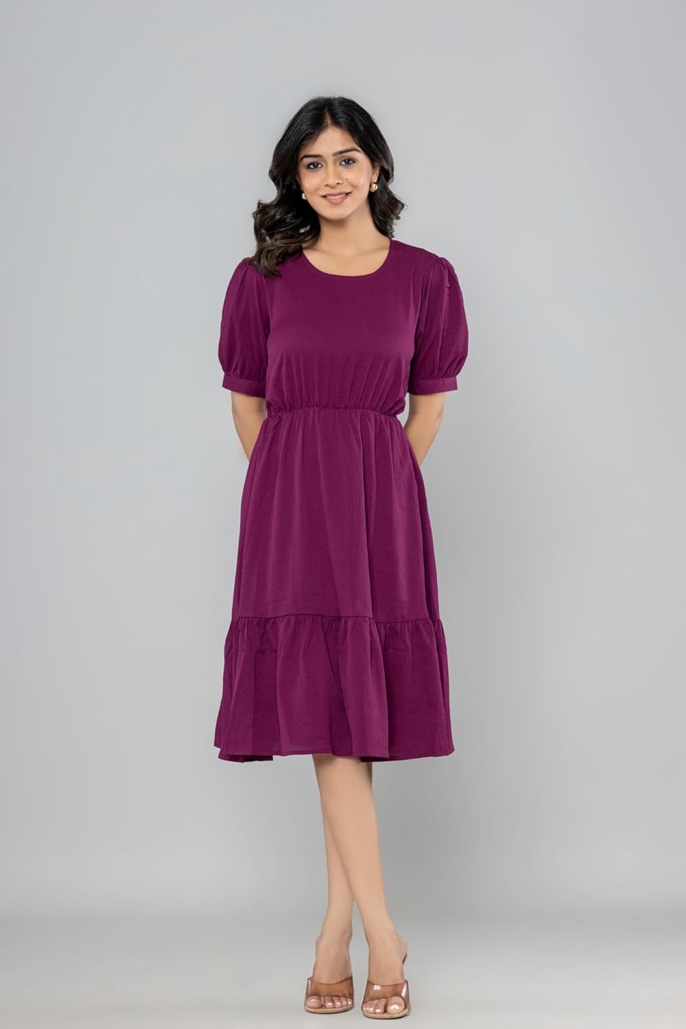 Aany’s Culture Dress for Women|One Piece for Women| Solid Round Neck Half Puff Sleeve Flared Pleated A-Line Midi Dress Dress for Women| Poly Cotton Dress for Women by Prixsa.com