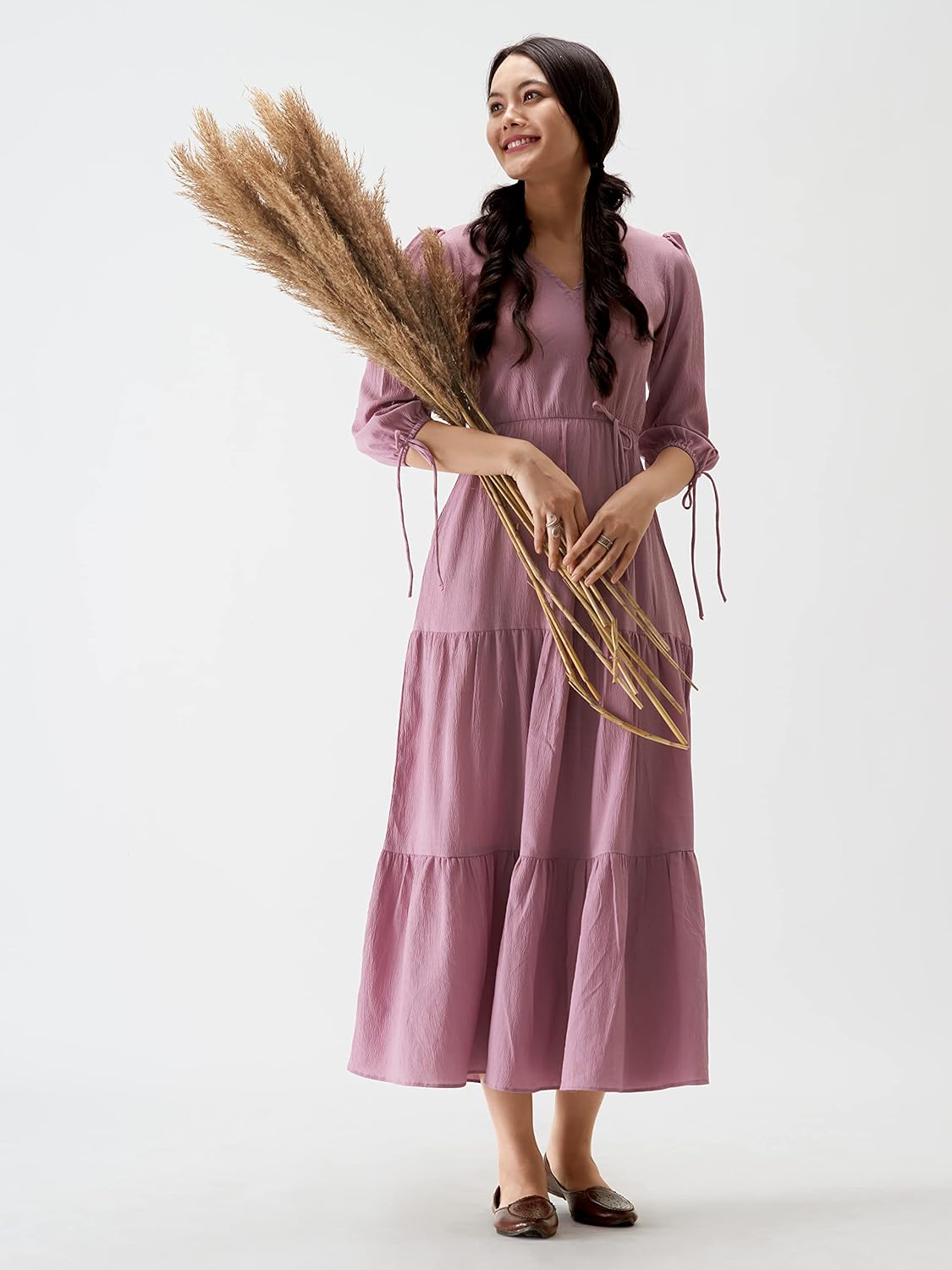Customers find the dress beautiful, with one mentioning it perfectly matches their skin tone, and they appreciate its great fit with nice fabric that feels comfortable on the body. The dress receives positive feedback for its fabric quality, value for money, and breathability. However, several customers note that the material is quite thin.