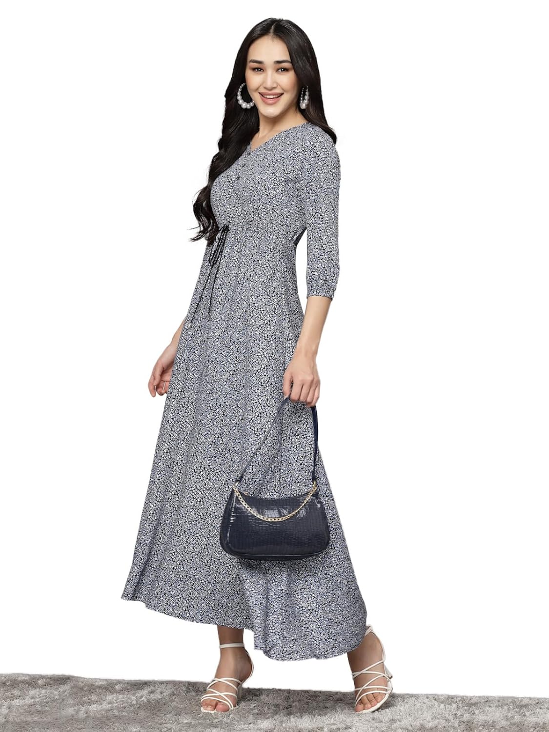 AAYU Printed 3/4 Sleeve Maxi Dress for Women by Prixsa.com