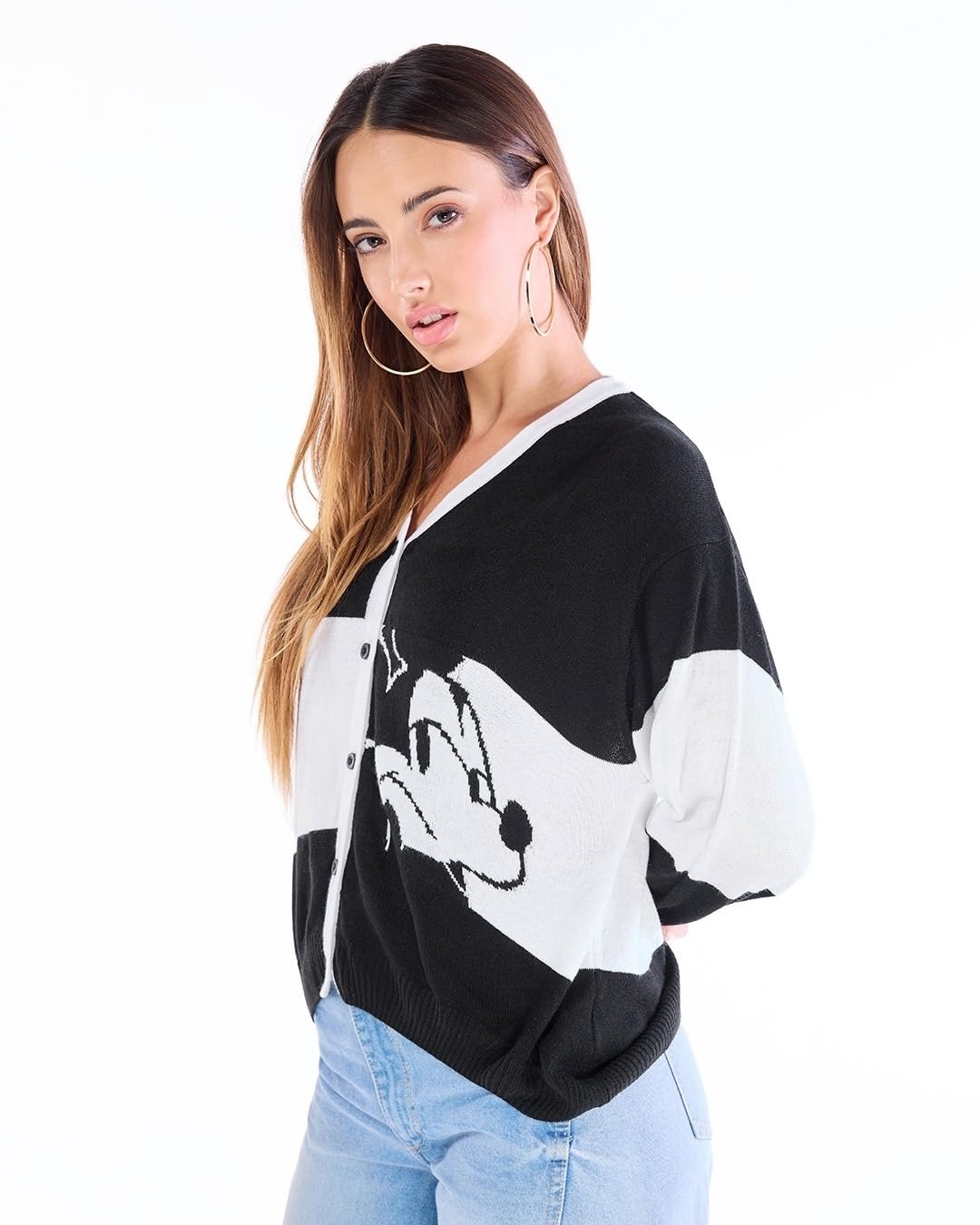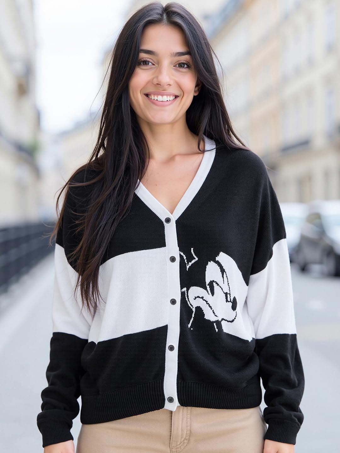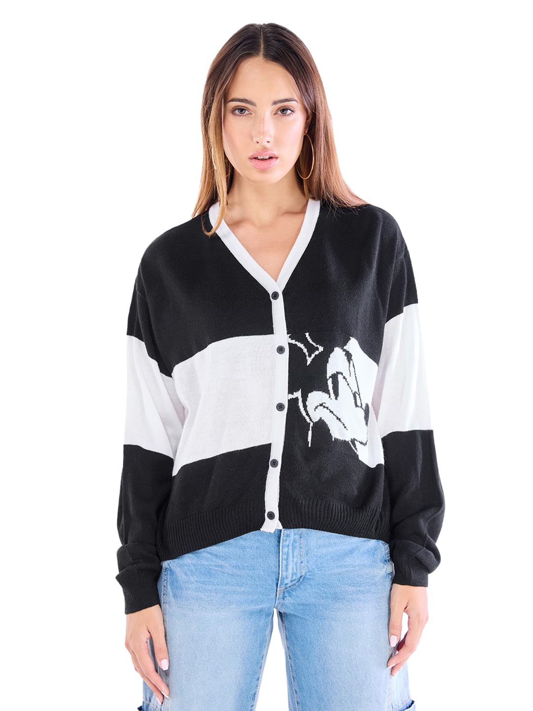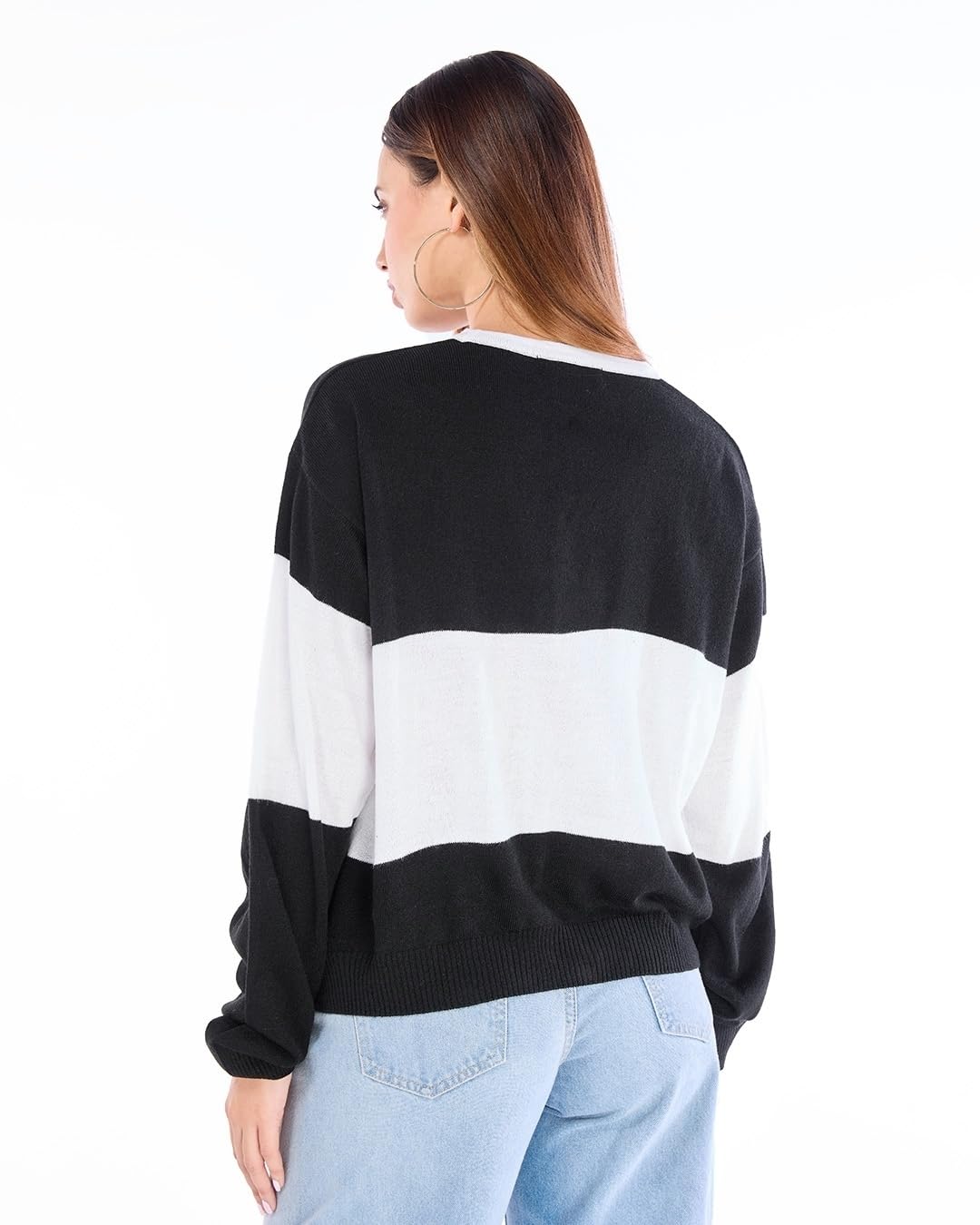 Stripes never go out of style, and this Women’s White & Black Striped Oversized Sweater is proof. Wear it with leggings and knee-high boots for a cozy, chic look.