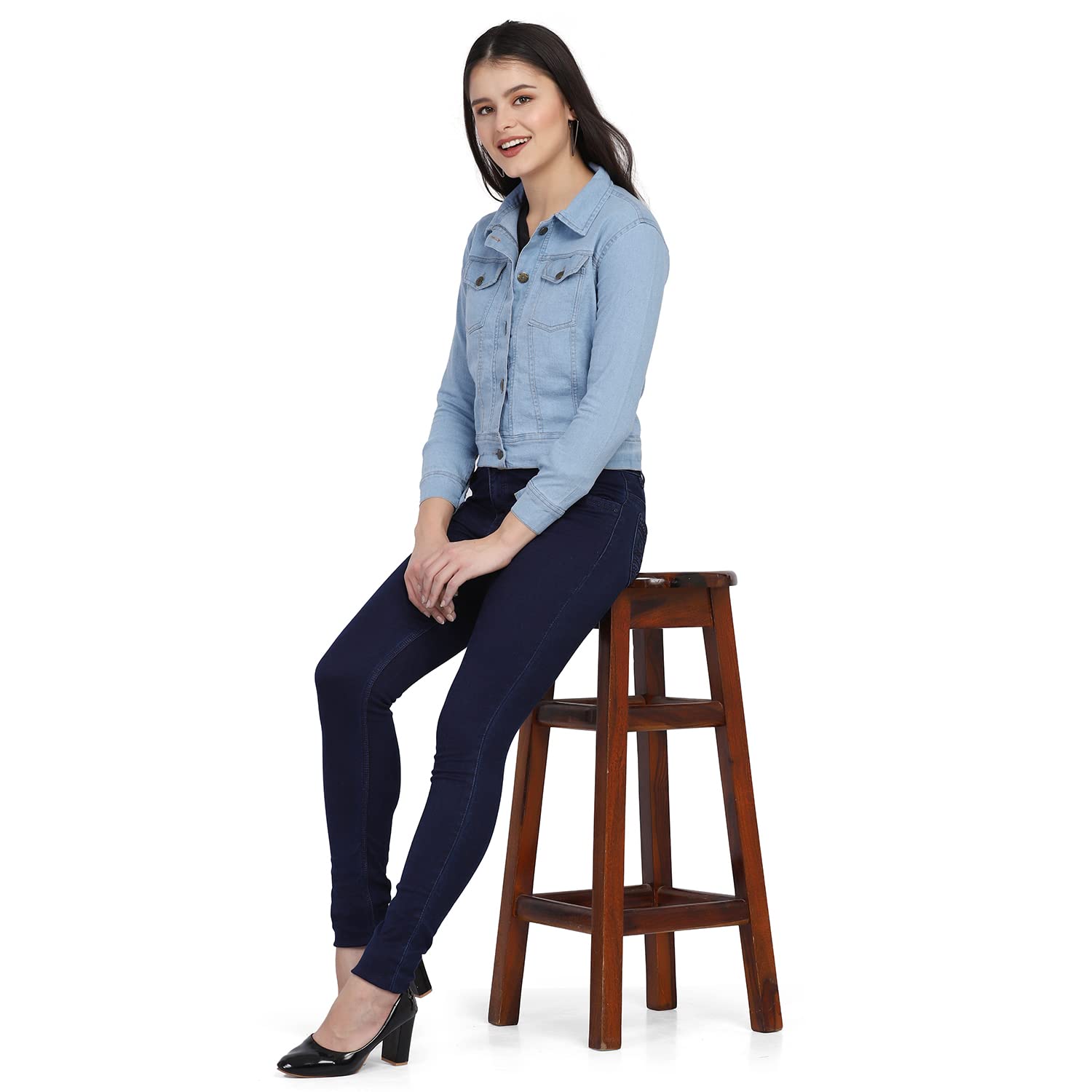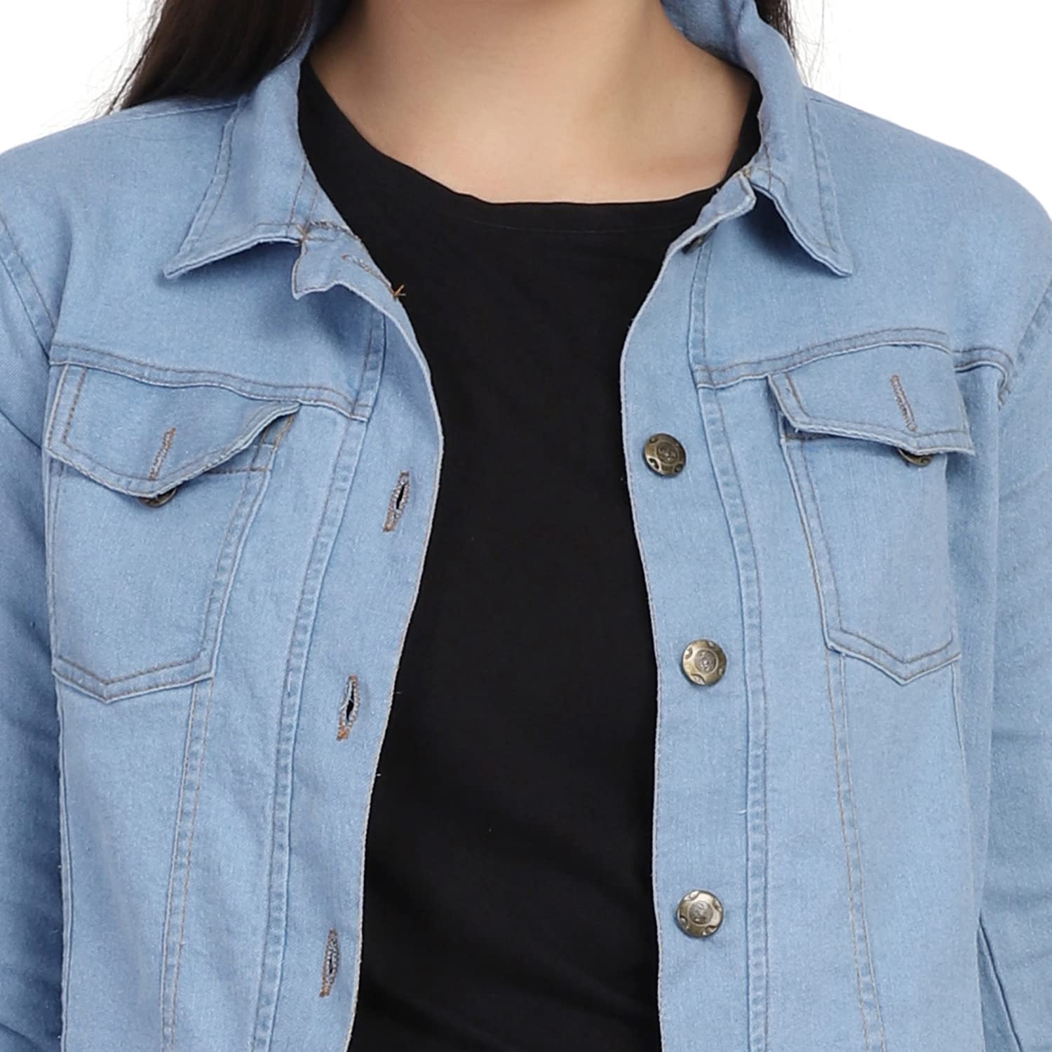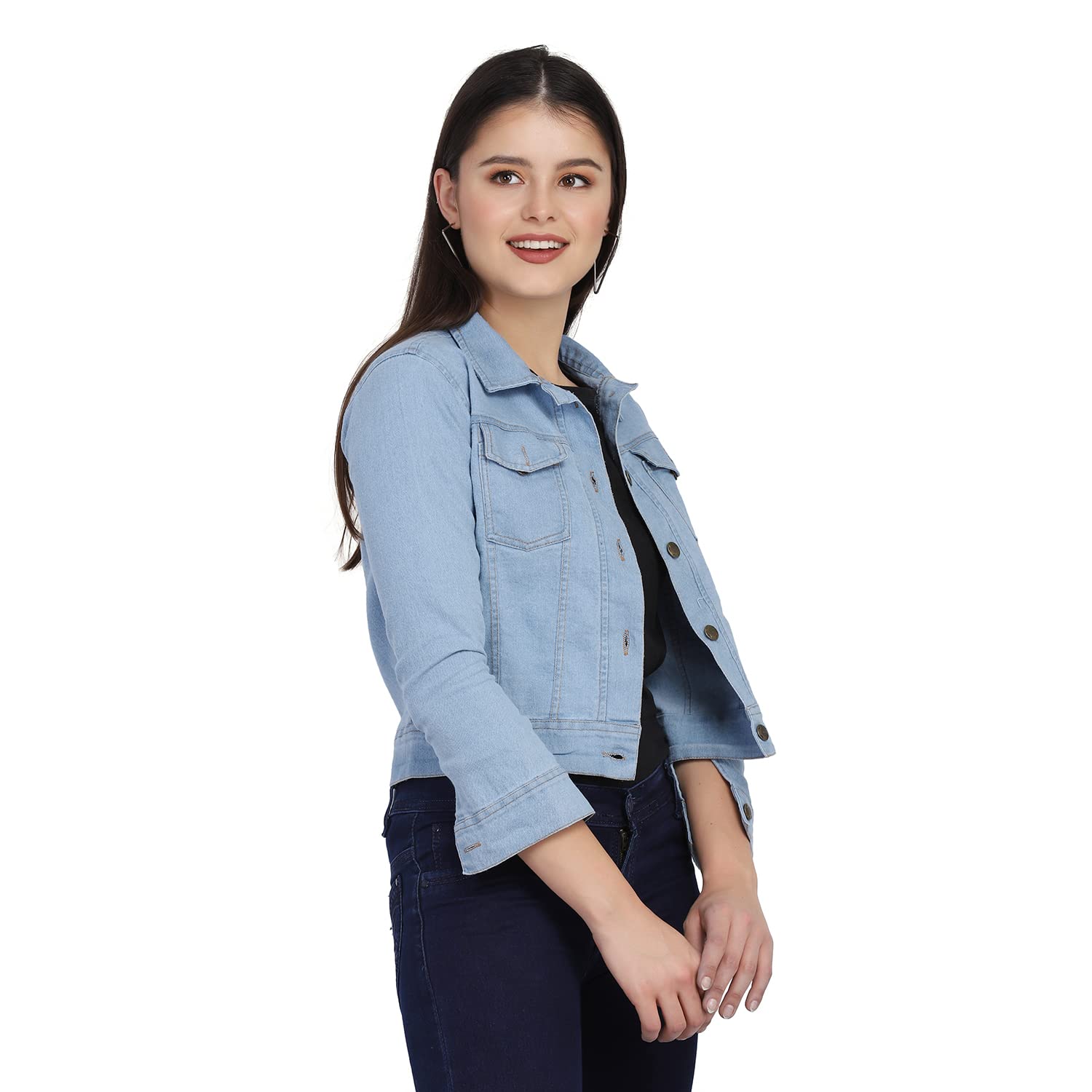 Buynewtrend Solid Women Regular Denim Jacket | Collar Neck Girls Jackets by Prixsa.com