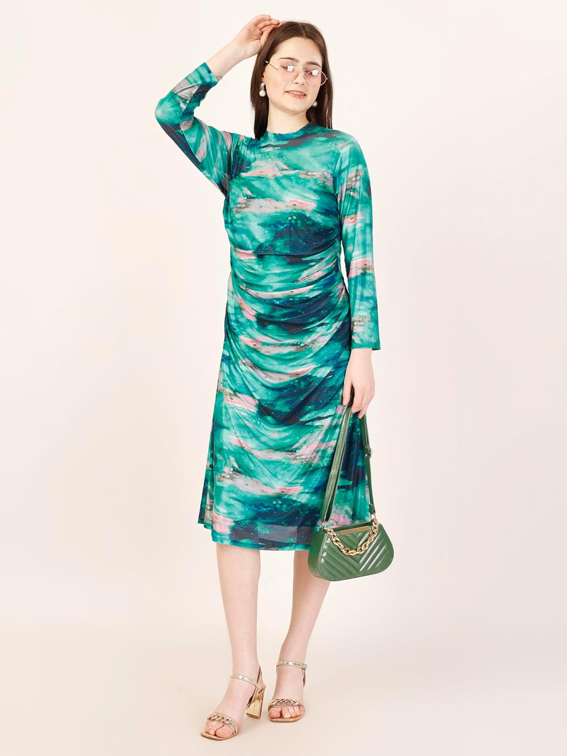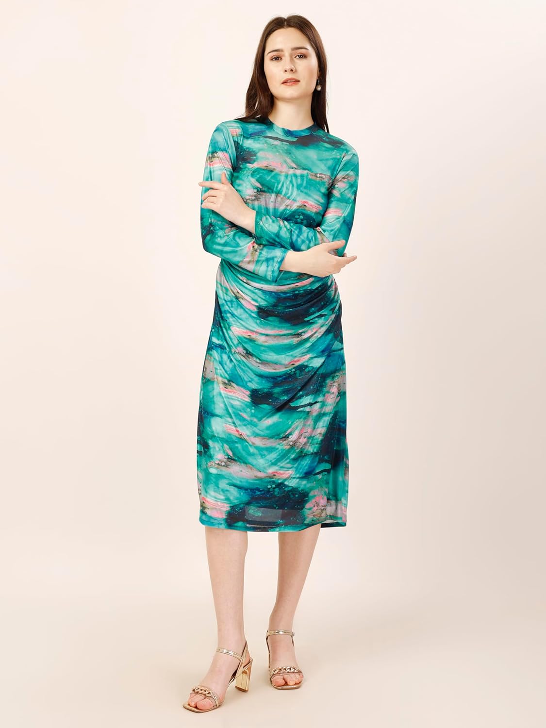 The multi colour & print all over , this midi dress will become your party outfit. The silhouette give it a subtle yet elegant appeal. Top it off with minimal jewellery and heels for classic look.