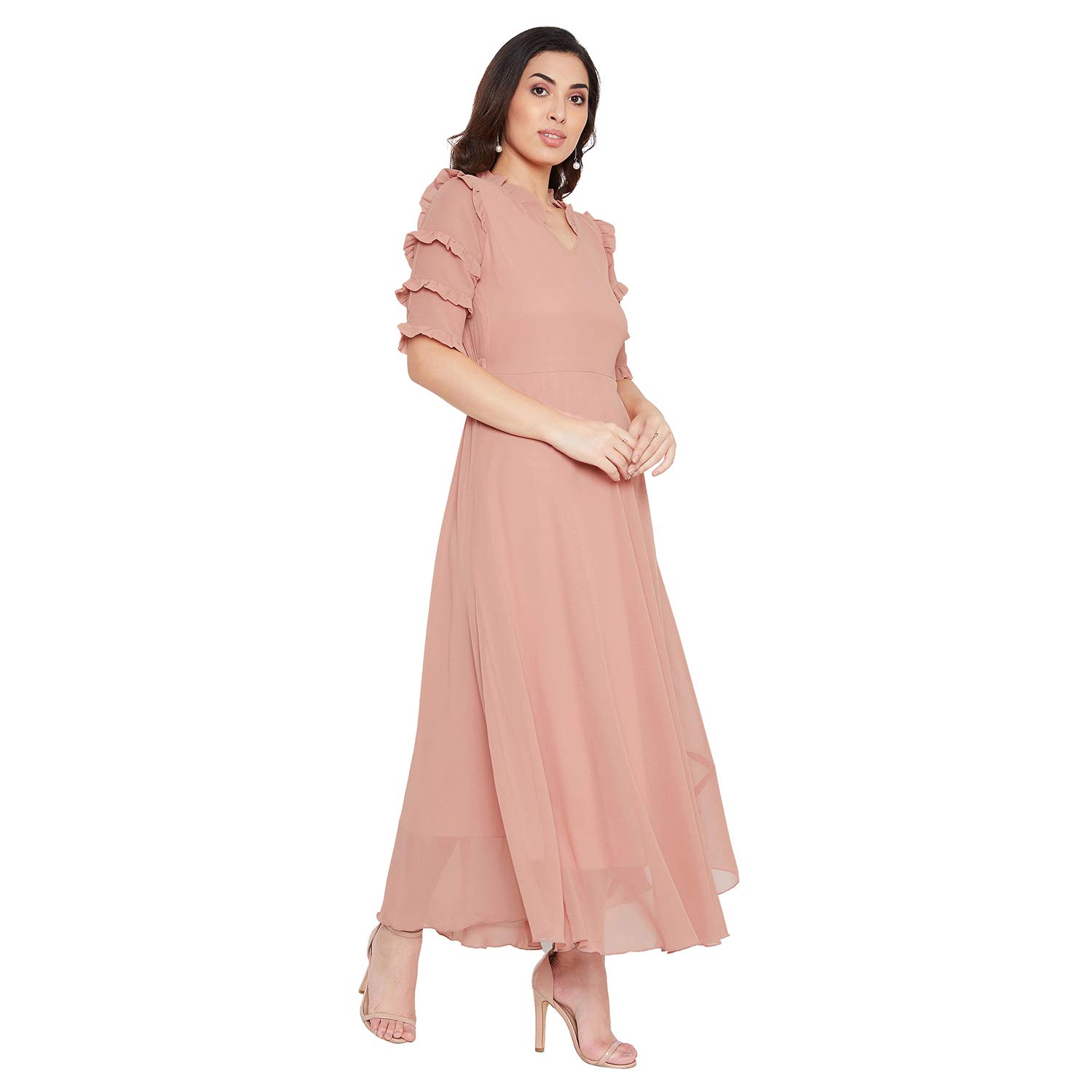 HELLO DESIGN Women V-Neck Ruffle Sleeve Detail A-line Maxi Dress by Prixsa.com
