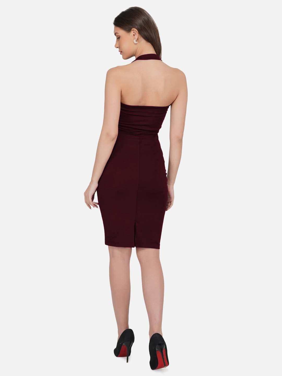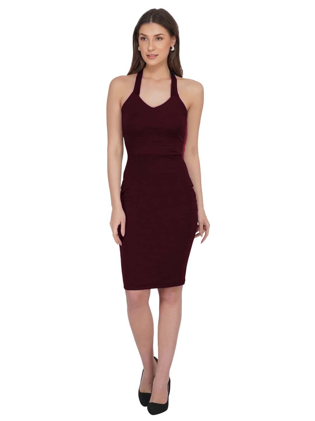 Imperative Halter Neck Bodycon Dress for Womens (Wine, Size – L) by Prixsa.com