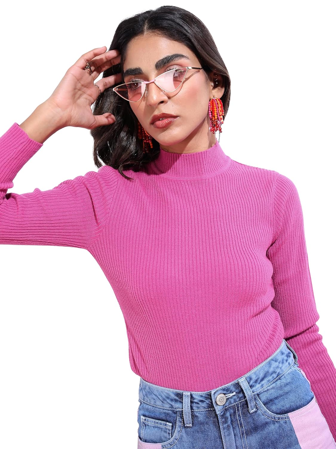 KETCH Acrylic Womens Full Sleeve Slim Fit Sweater KHSW000014 Pink M by Prixsa.com