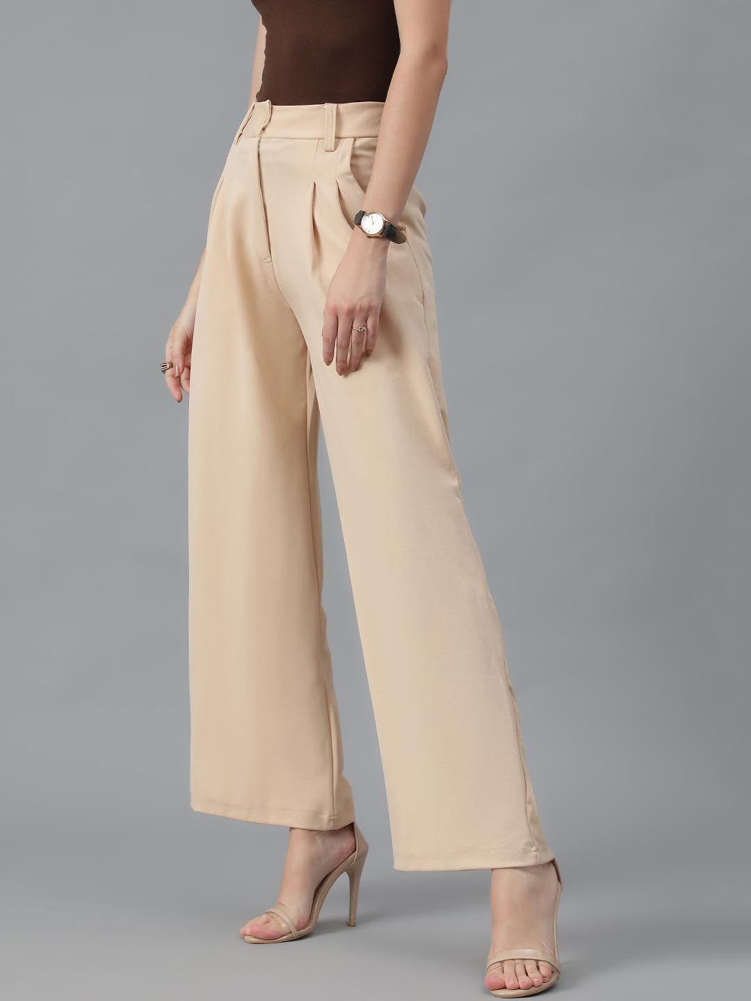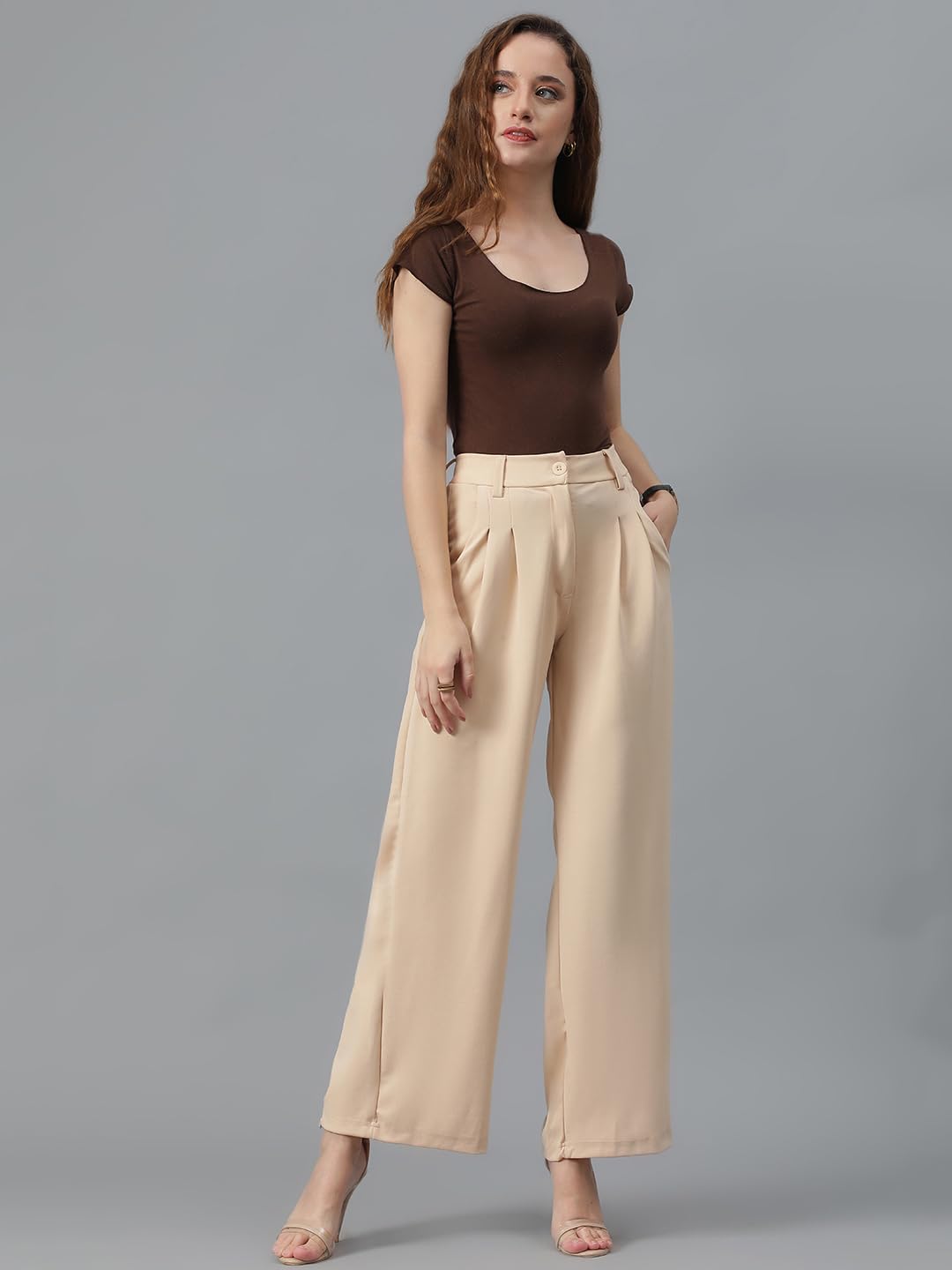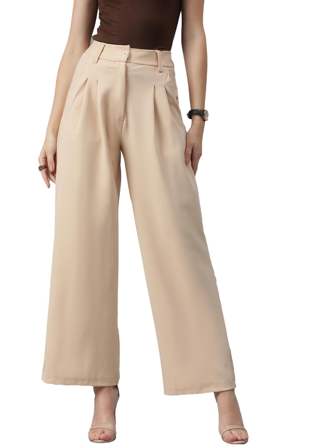 KOTTY Women’s High Rise Viscose Rayon Relaxed Fit Korean Trousers by Prixsa.com