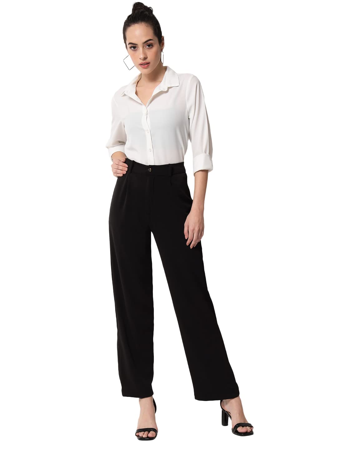 These women stylish light blue solid pant from kotty are perfect pick for you.We offer a wide range of good quality attractive imported regular length casual pant.these light blue straight fit with button closure pant are made with polyester fabric.Wear these solid high rise pant with top and heels depending on your preference.kindly ensure the size chart before buying.