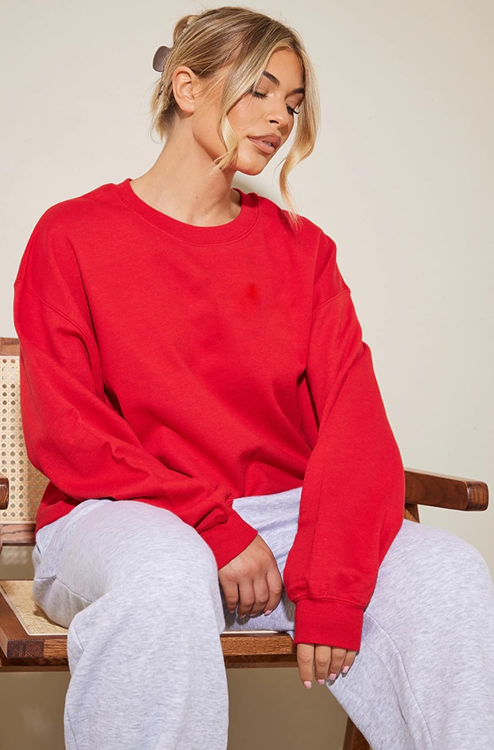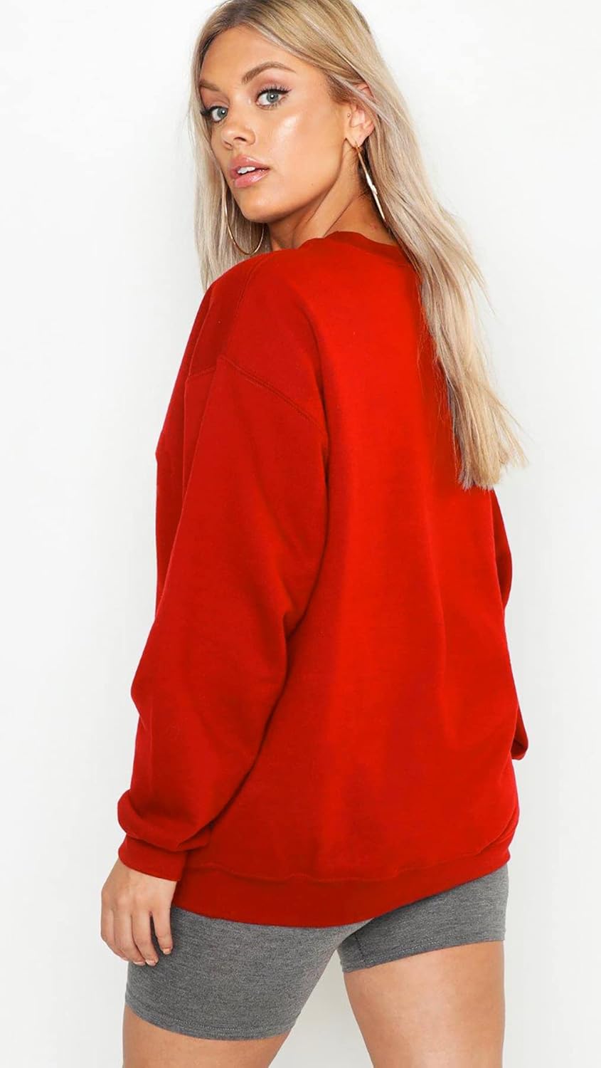LEOTUDE Women’s Boyfriend/Loose Fit Round Neck Loopknit Sweatshirt (Red Color) by Prixsa.com