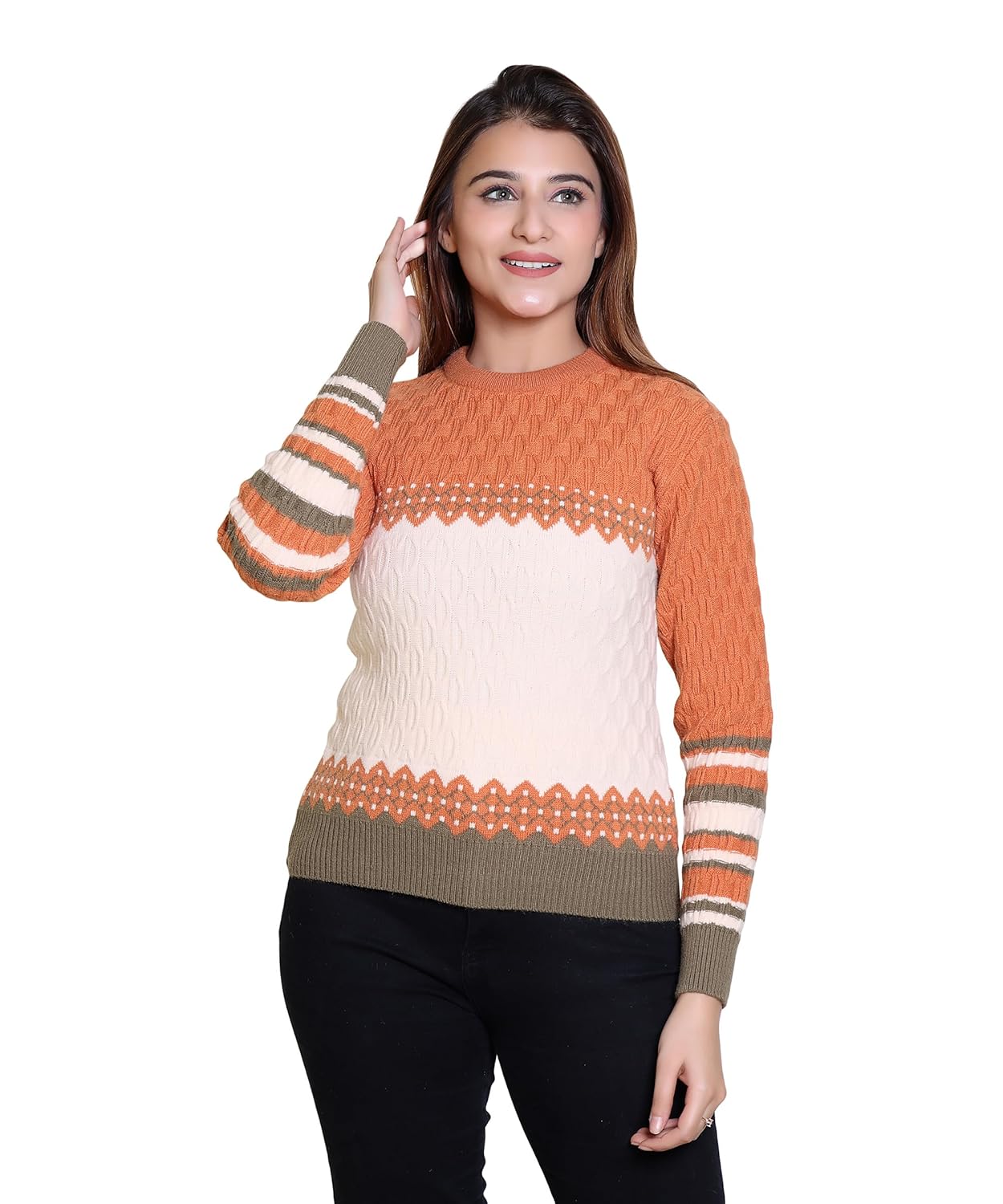 LEZA Winter Wear Trendy Self Desgine Round Neck||Full Sleeve|Soft and Warm||Cotton Acrylic Colorblocked Sweater for Women’s and Girls (606) by Prixsa.com