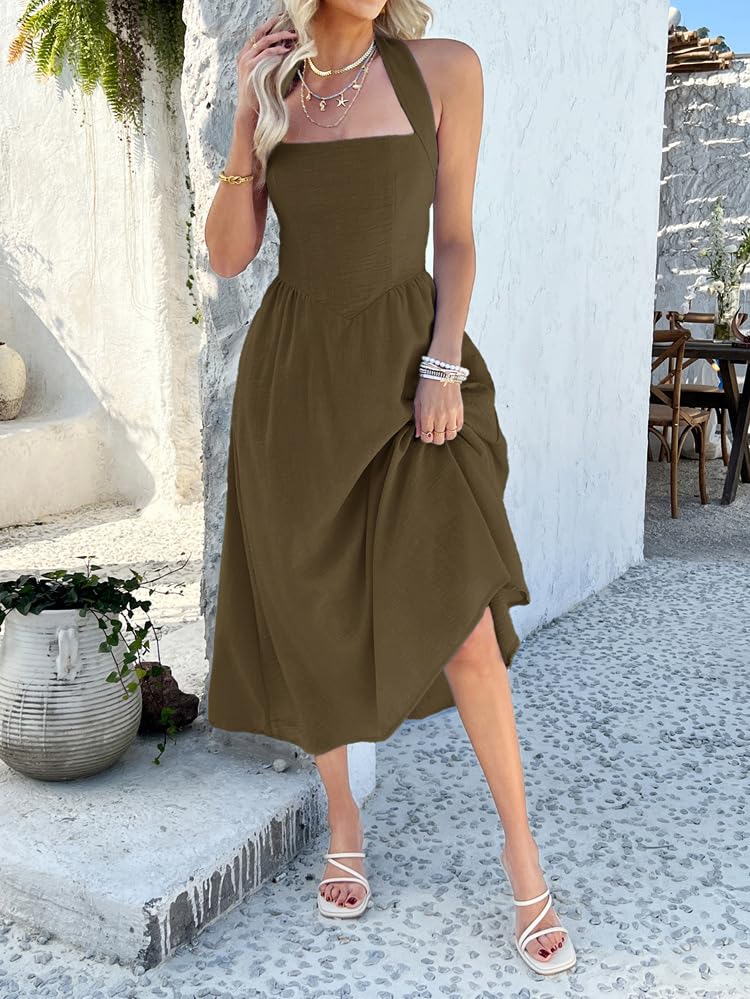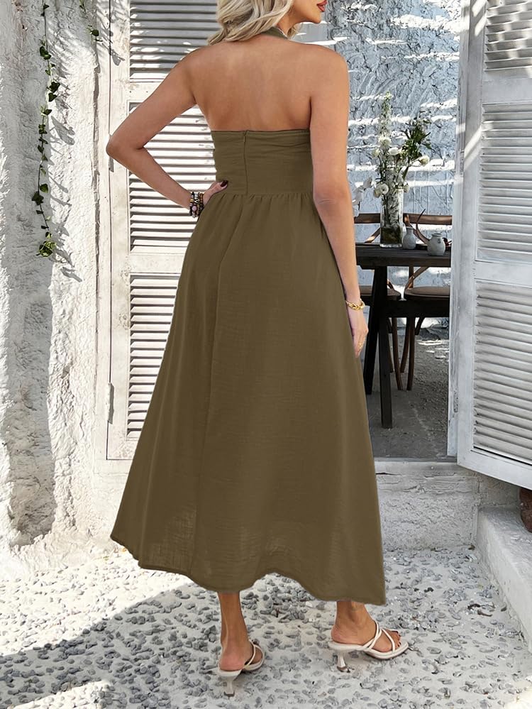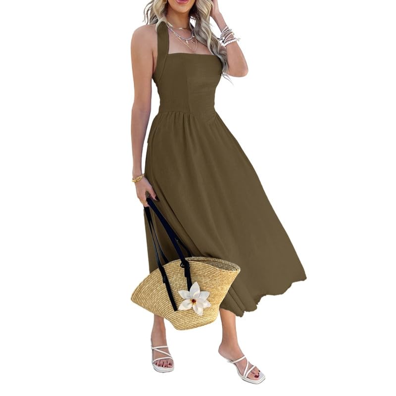 Mastyle® Women’s Summer Solid Color Sleeveless Halter Neck Dress Lightweight & Comfortable by Prixsa.com