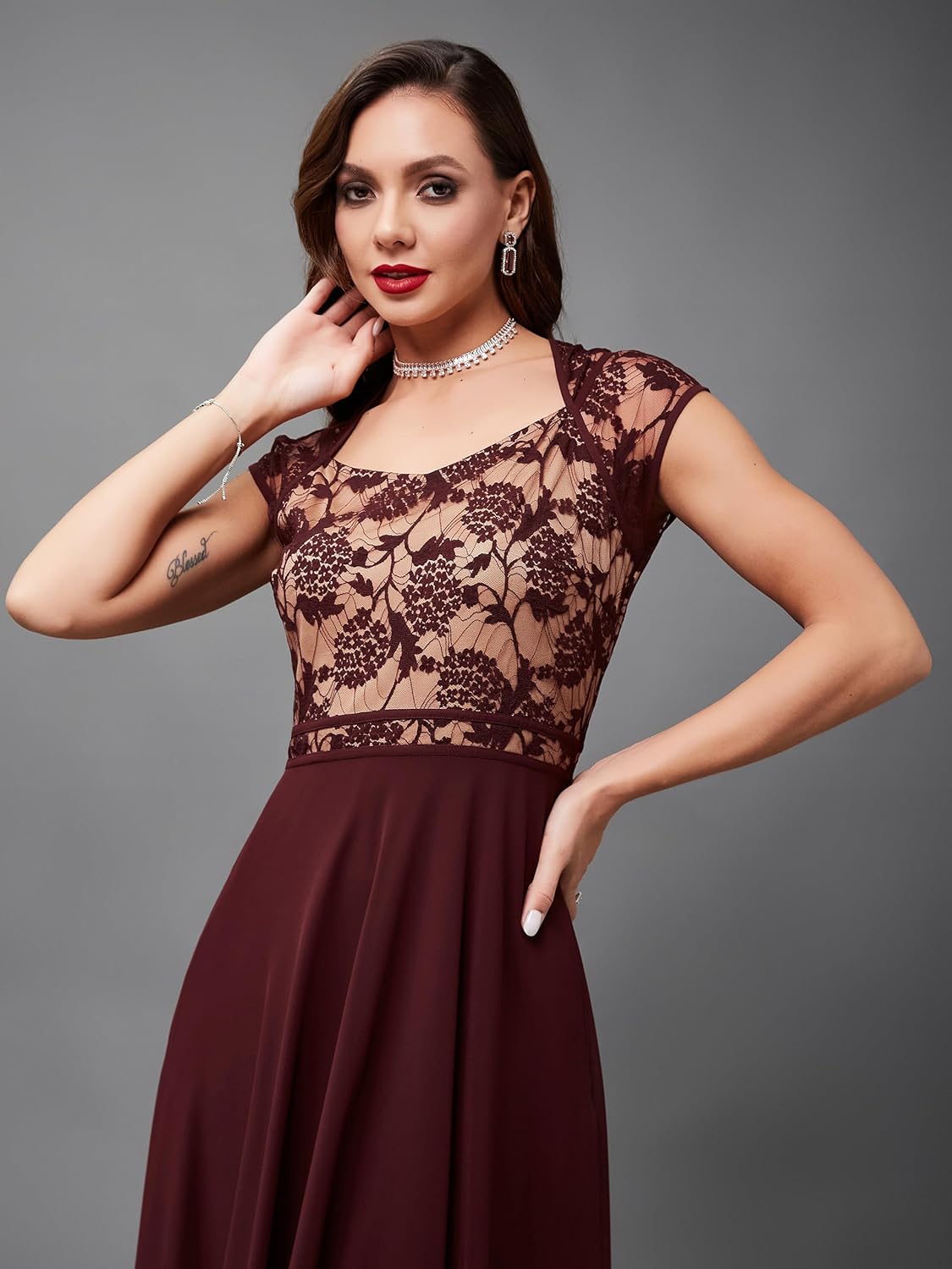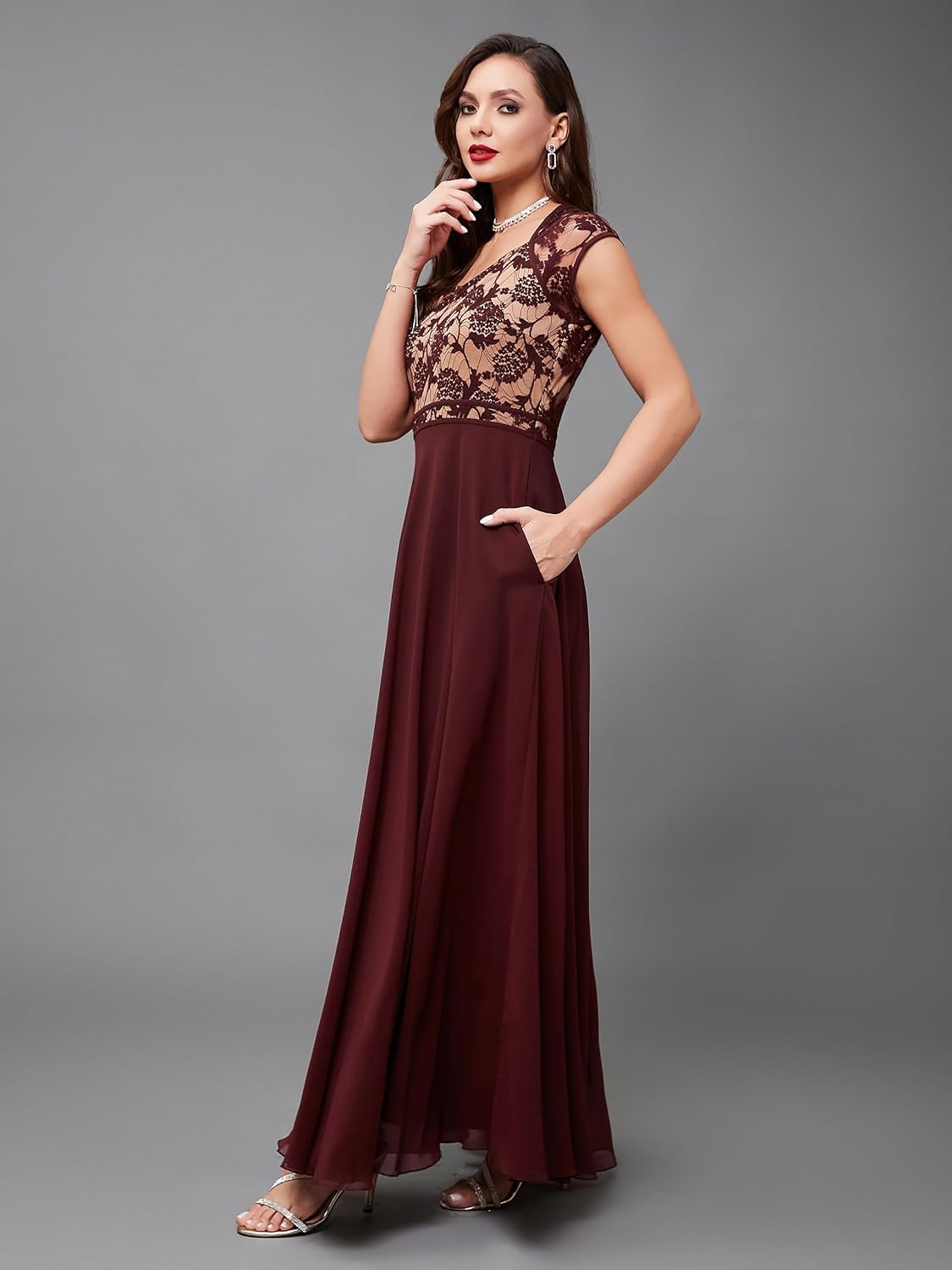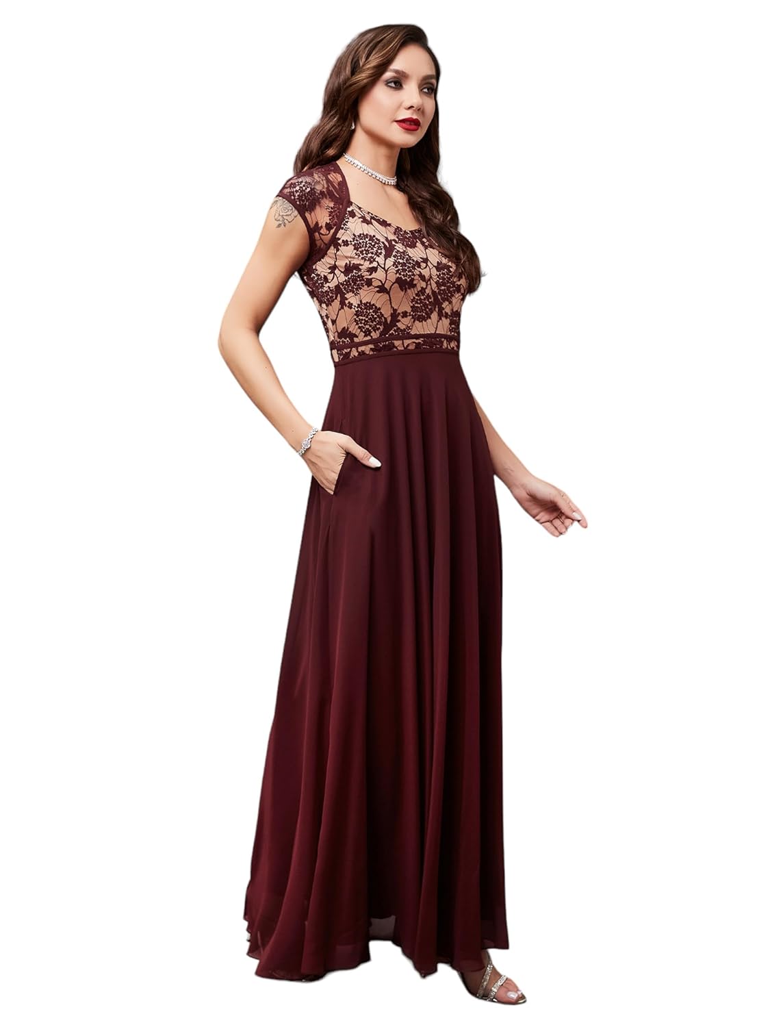 Miss Chase Women’s V-Neck Cap Sleeves Lace Overlaid Fit & Flare Maxi Dress with Pockets (Plus by Prixsa.com