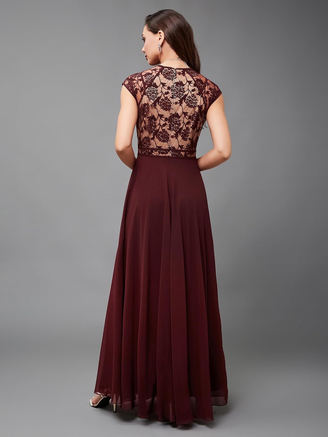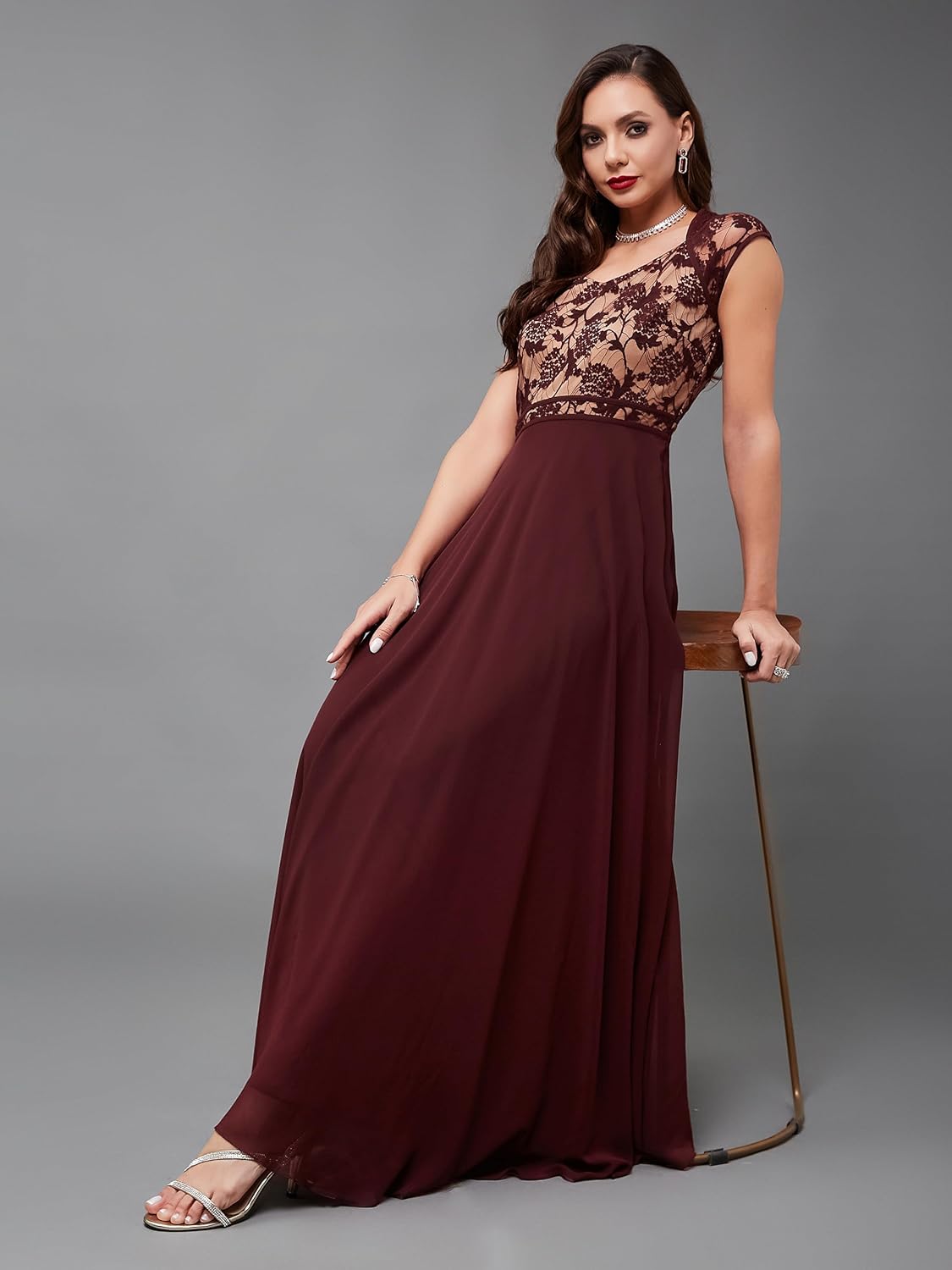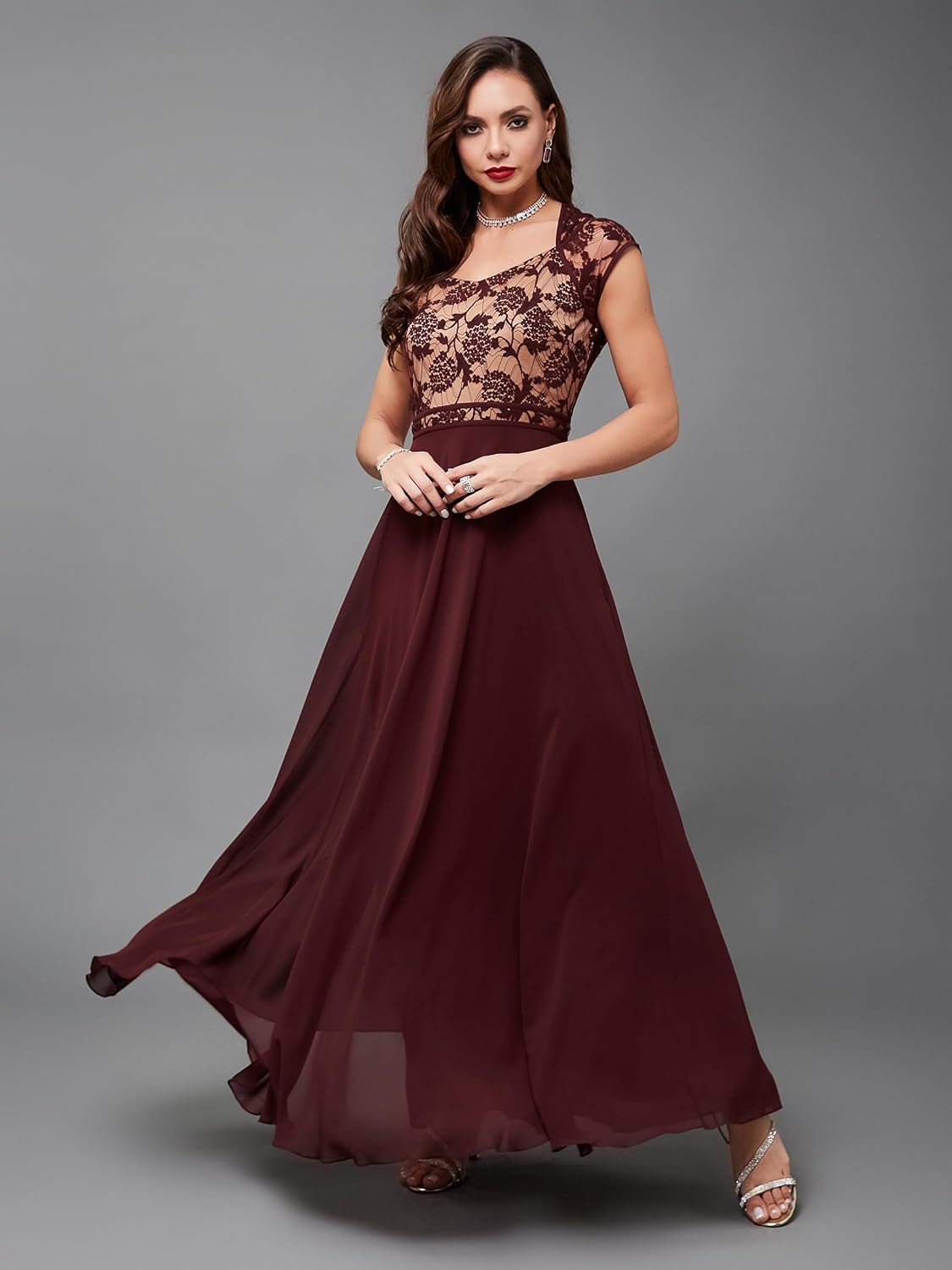 Miss Chase Women’s V-Neck Cap Sleeves Lace Overlaid Fit & Flare Maxi Dress with Pockets (Plus by Prixsa.com