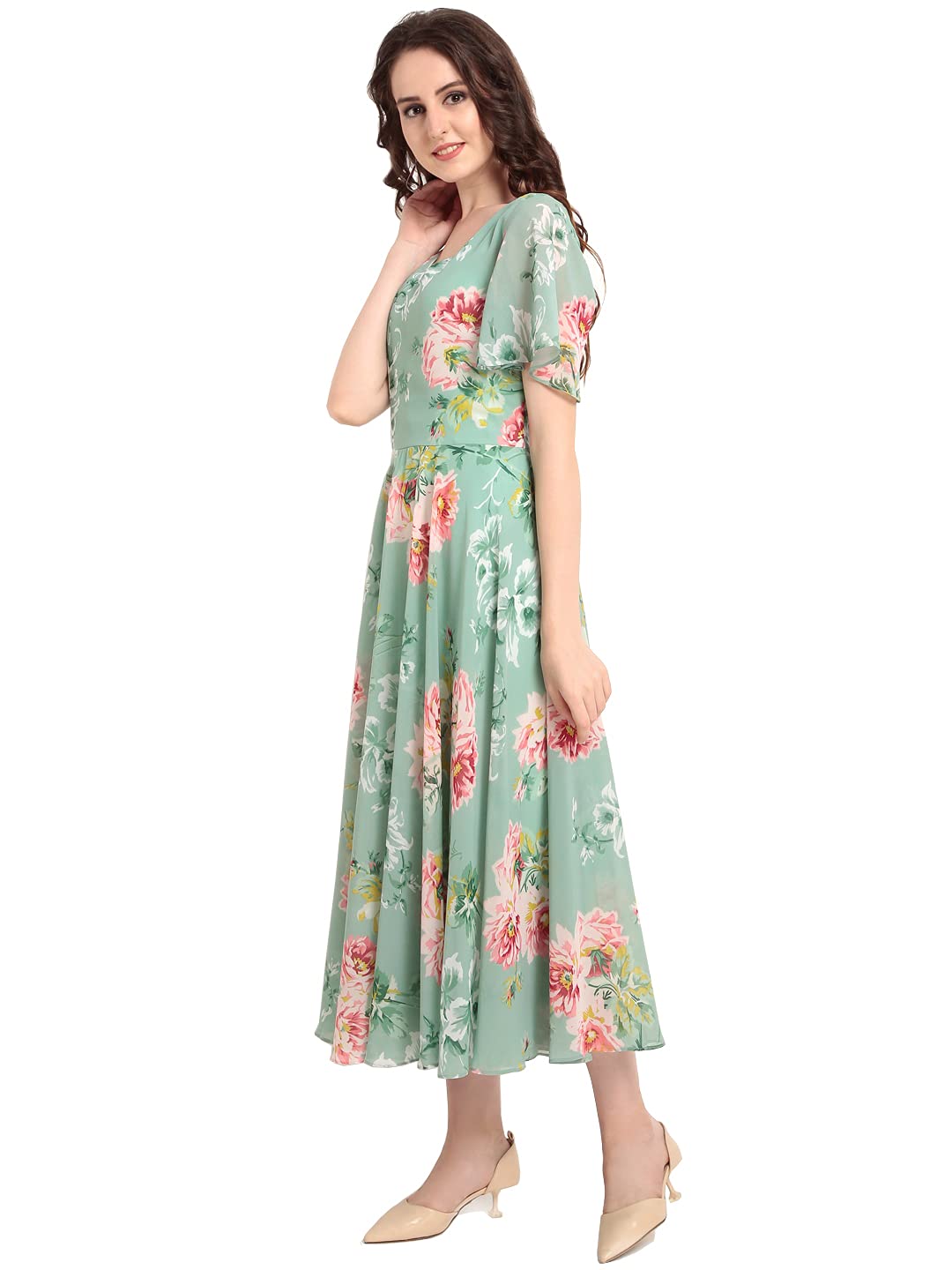 Customers like the dress’s material quality, with one noting its deep neck design, and appreciate its color, with one describing it as a flowy dress with lining. The dress receives positive feedback for its perfect fit, good length, and comfortable rayon fabric that hugs the body well. Customers also find it offers good value for money.