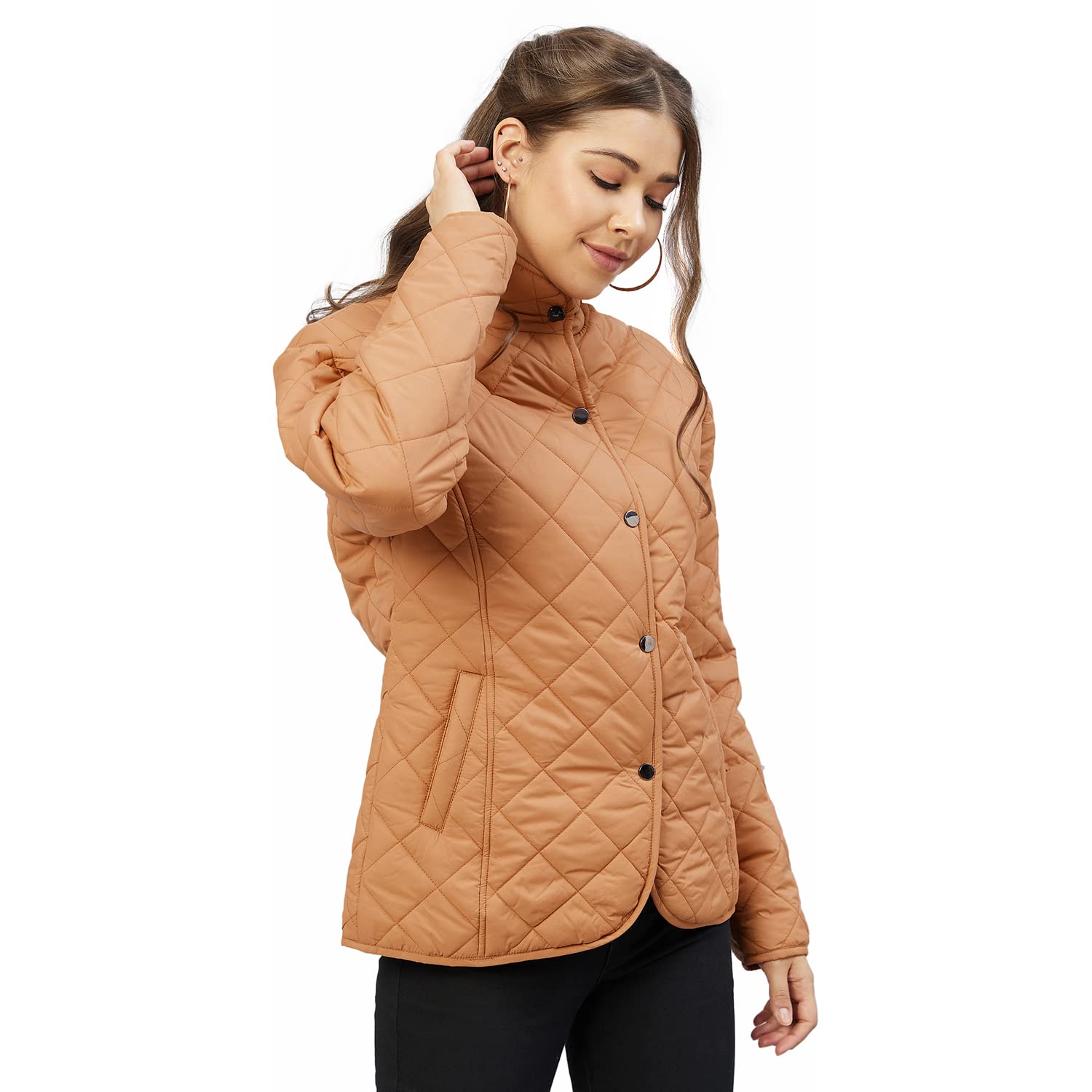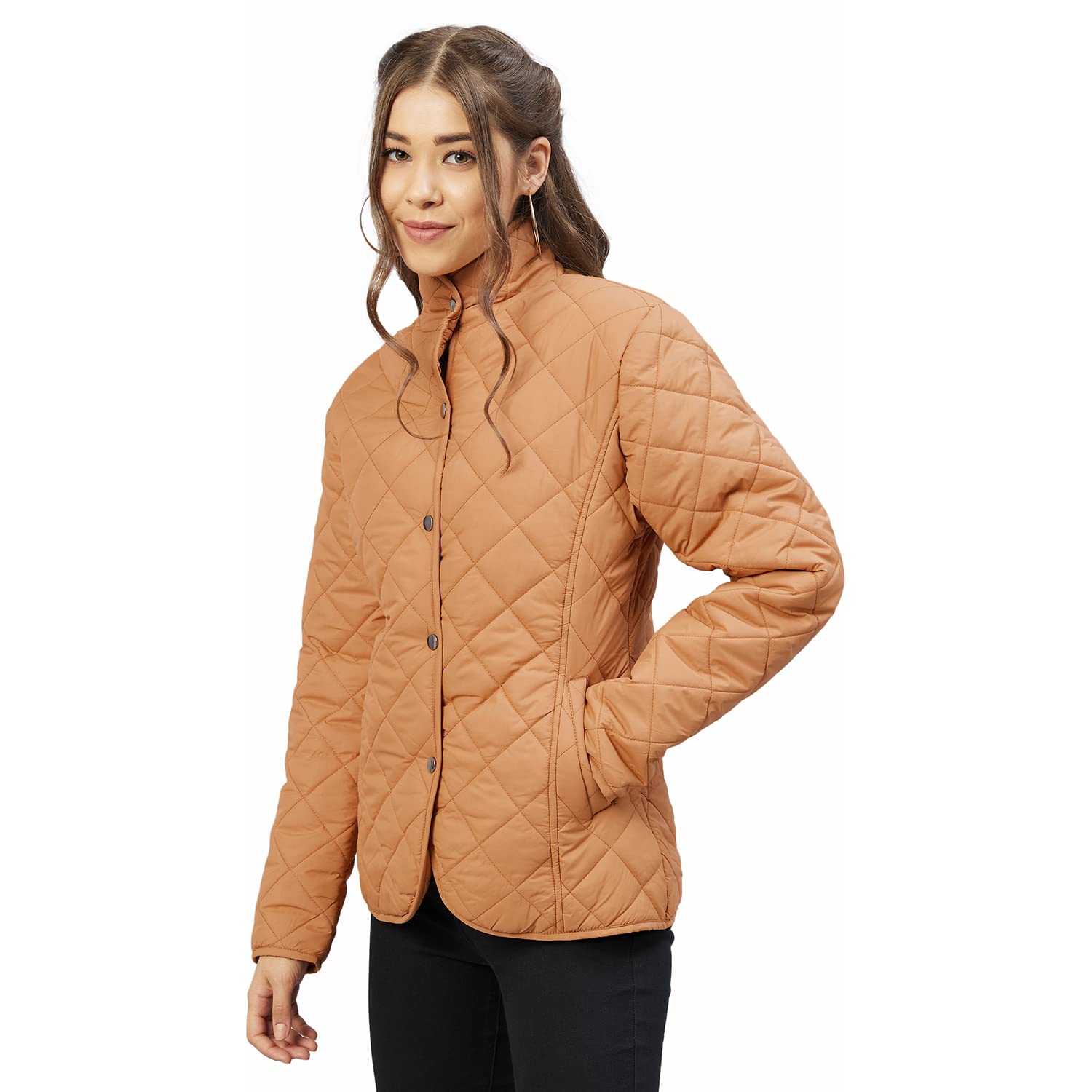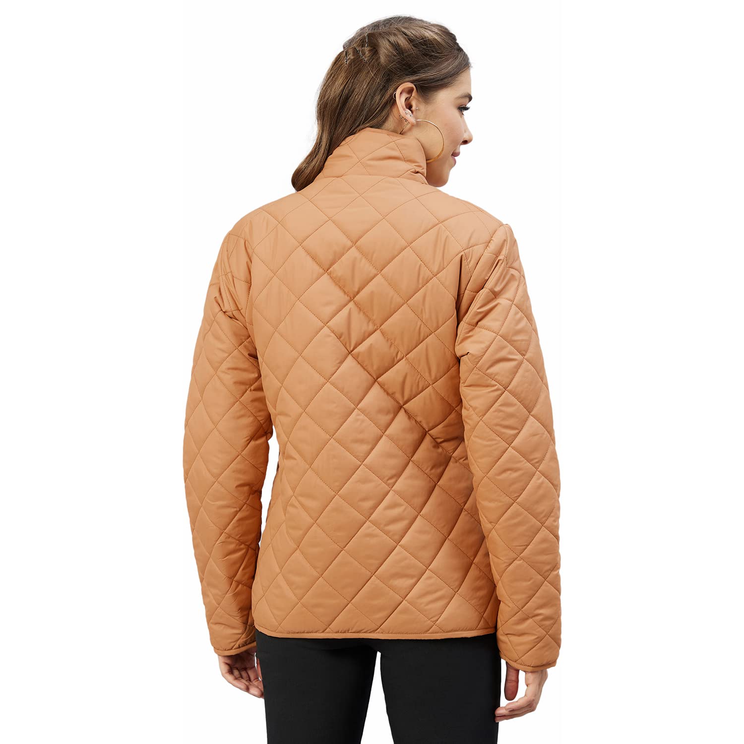 RARE Women Casual Tan Stand Collar Solid Padded Jacket