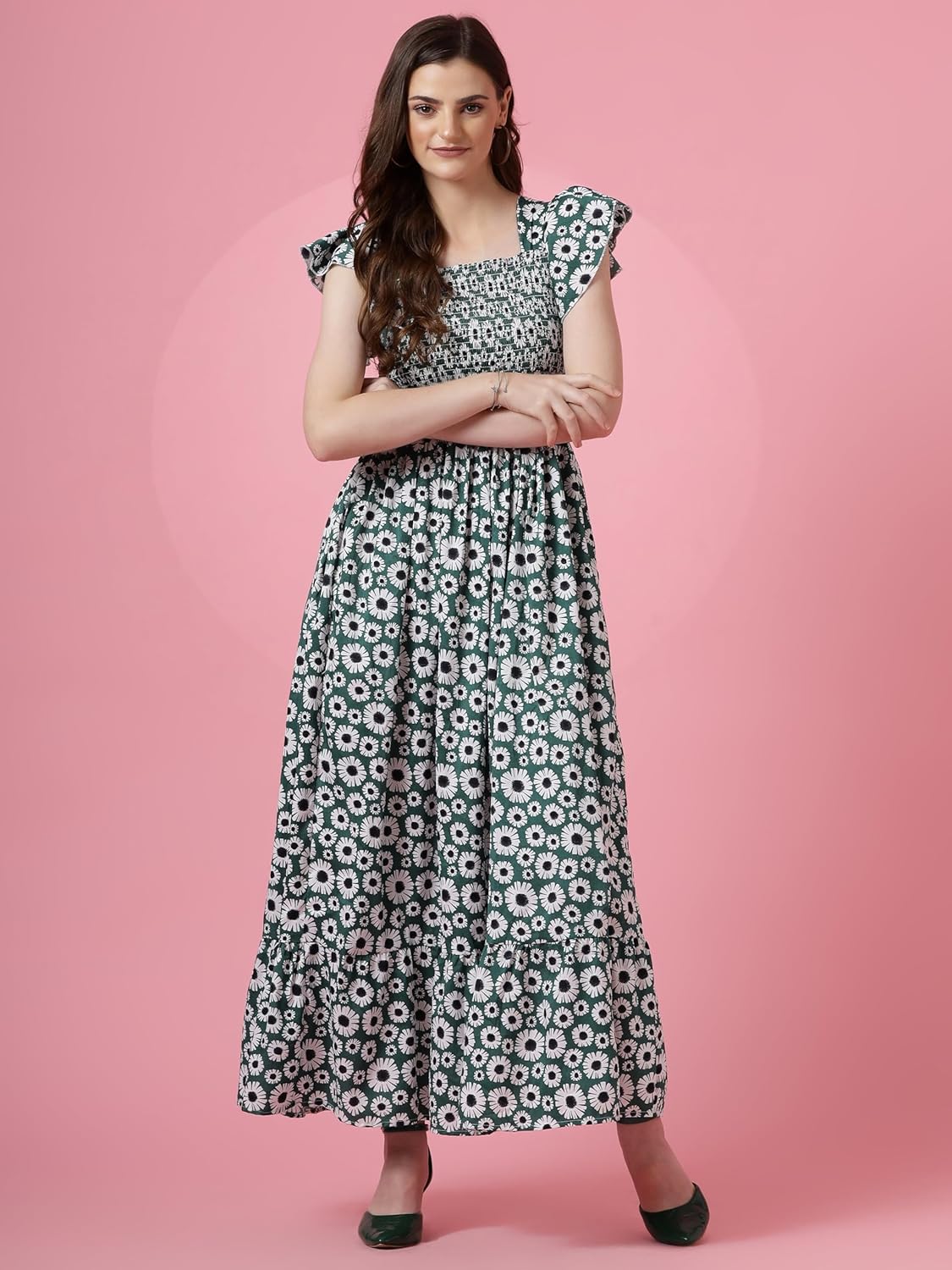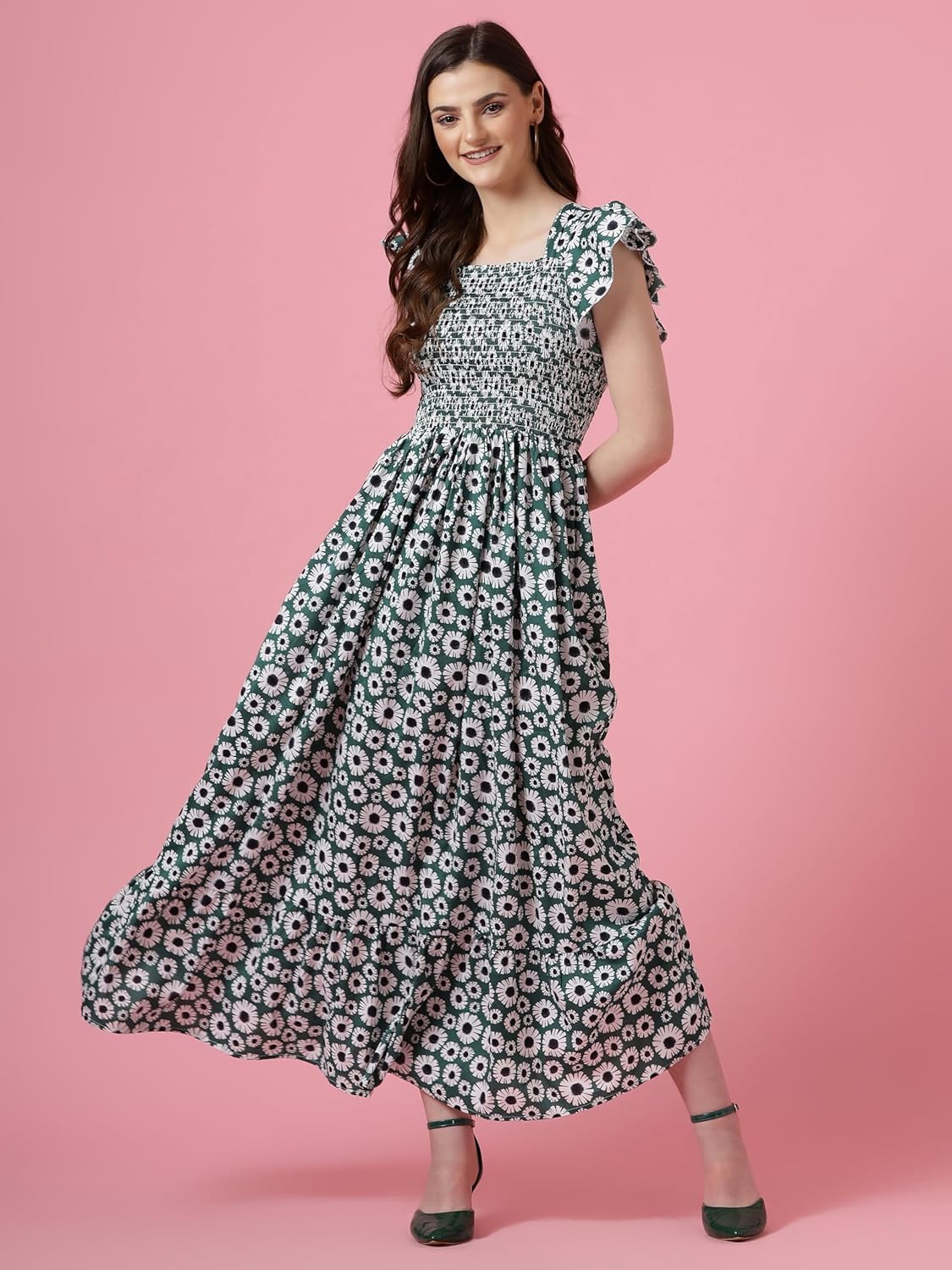 Sheetal Associates Women’s Floral Print Puff Sleeve Fit & Flare Maxi Dress (in, Alpha, XL, Standard, Green)