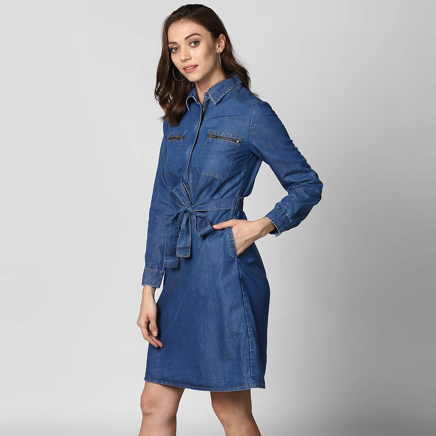 STYLESTONE Women’s Blue Denim Double Pocket Double Flap Dress
