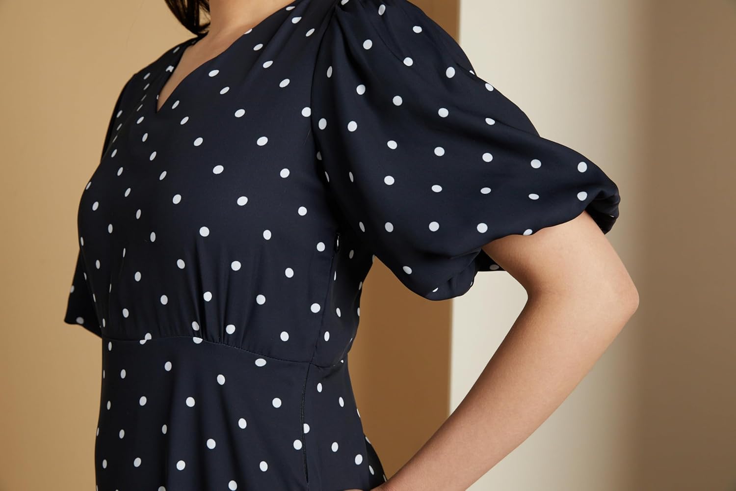 Customers find the dress has excellent fabric quality and is comfortable, with one noting it’s skin-friendly. They describe it as classy-looking, with one customer particularly appreciating the dot printing design. Customers are satisfied with the sizing, and one mentions the color doesn’t fade.