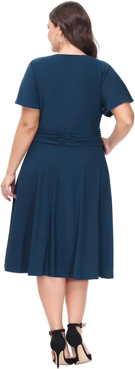 Our Plus Size Dress features short flare sleeves that graciously cover your arms. Designed with an empire waist and a hidden tummy control panel, this dress is expertly designed to accentuate your curves. This dress boasts of a simple yet classic style that never goes out of fashion. Pair it with a denim jacket for a laid-back style or a cardigan for a cozier look for those colder days.