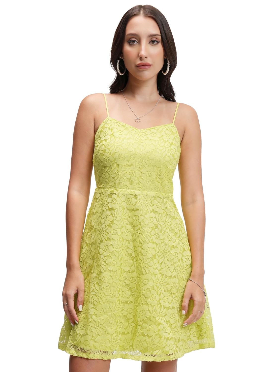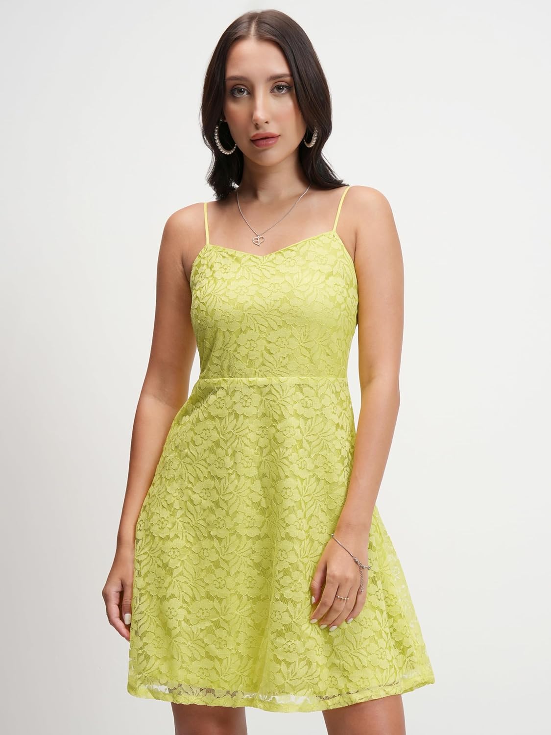 Tokyo Talkies Womens Chic Crochet Self-Design Sheath Dress | Short Length & Strappy Sleeves| Short Length | Crochet Self-Design| Stylish by Prixsa.com