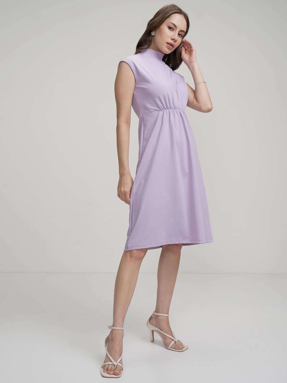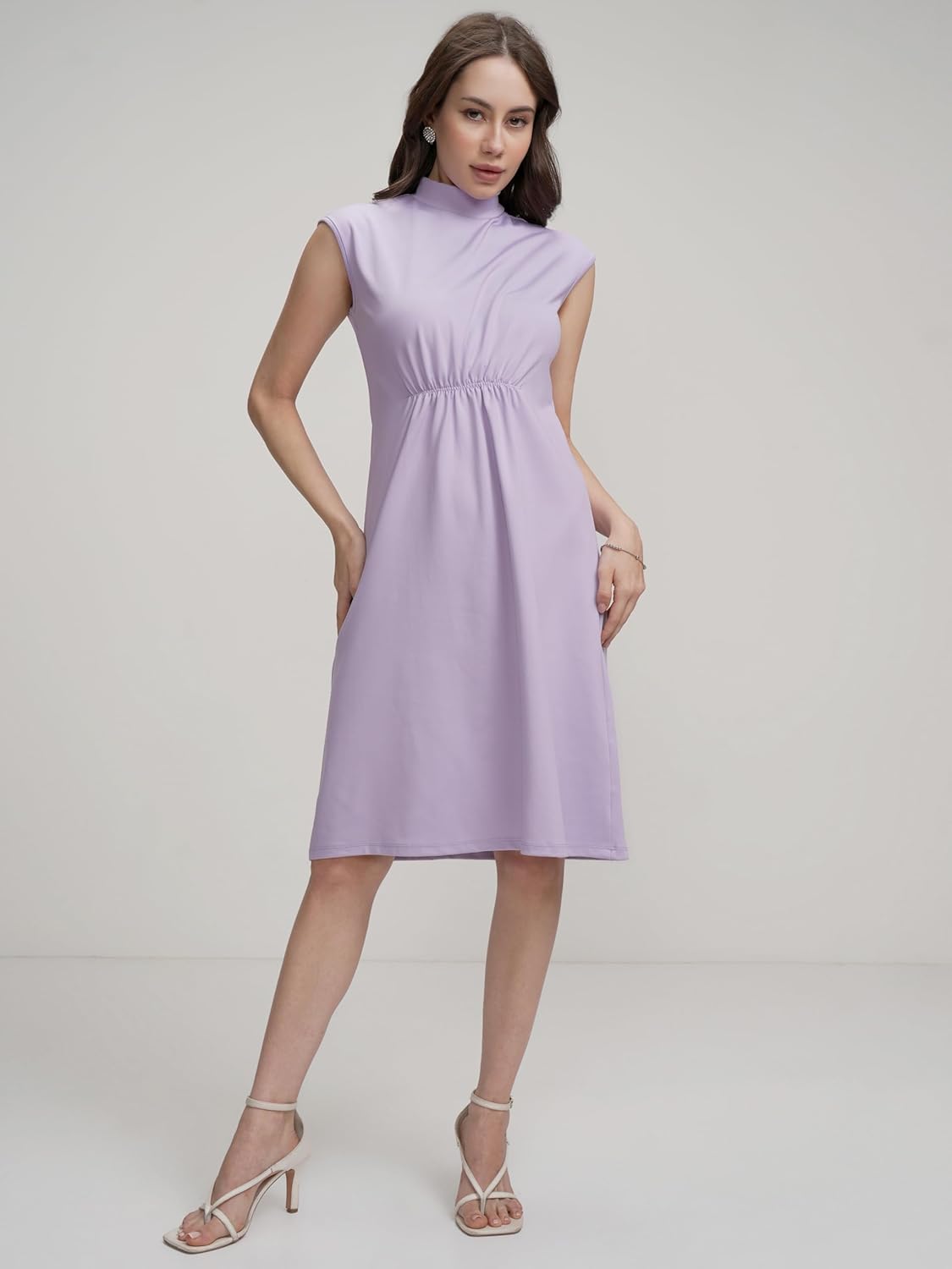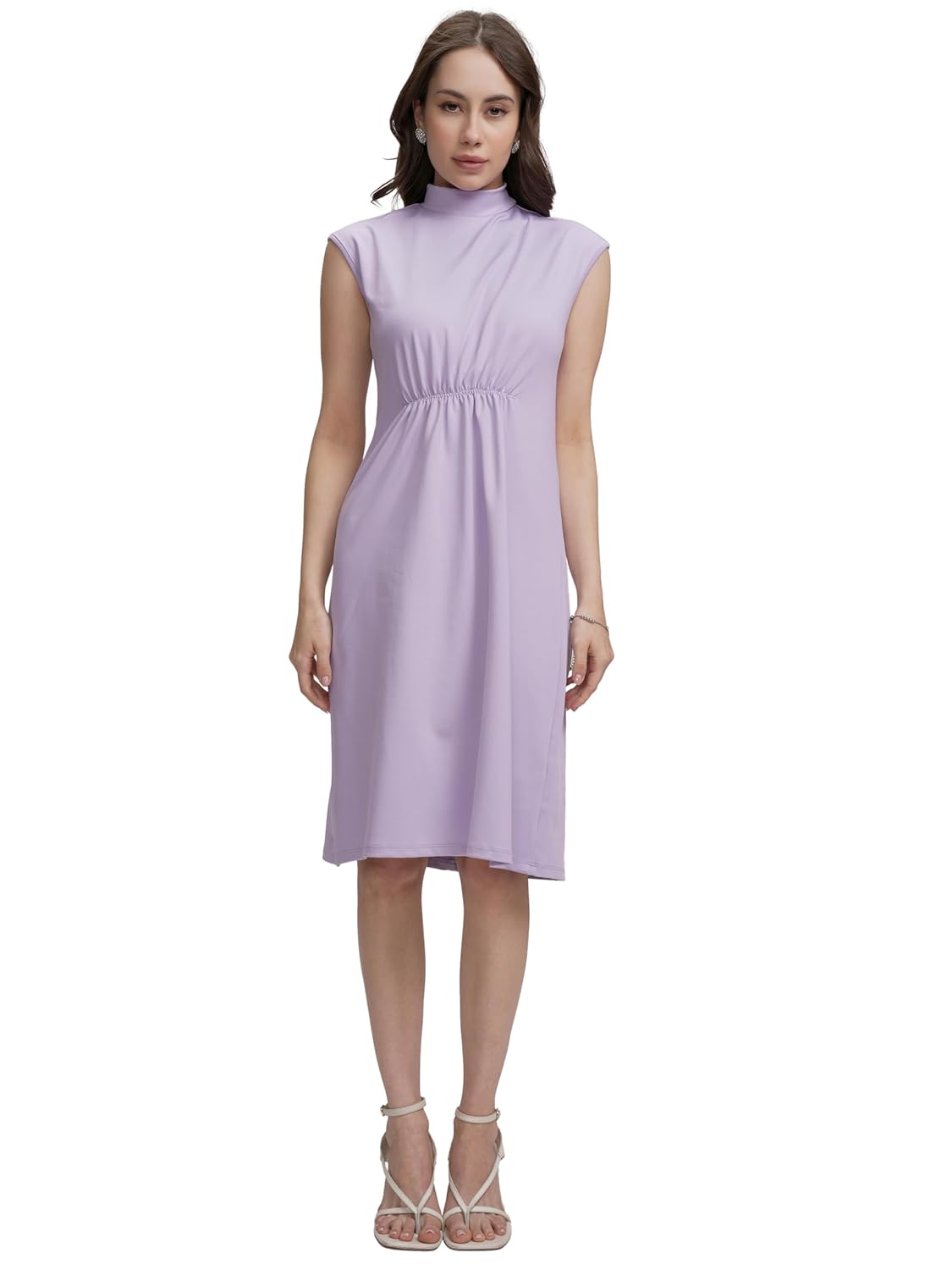 Tokyo Talkies Women Dresses for Women | Solid Color | Above Knee Dress | High Neckline | Front Gather | Elegant & Chic