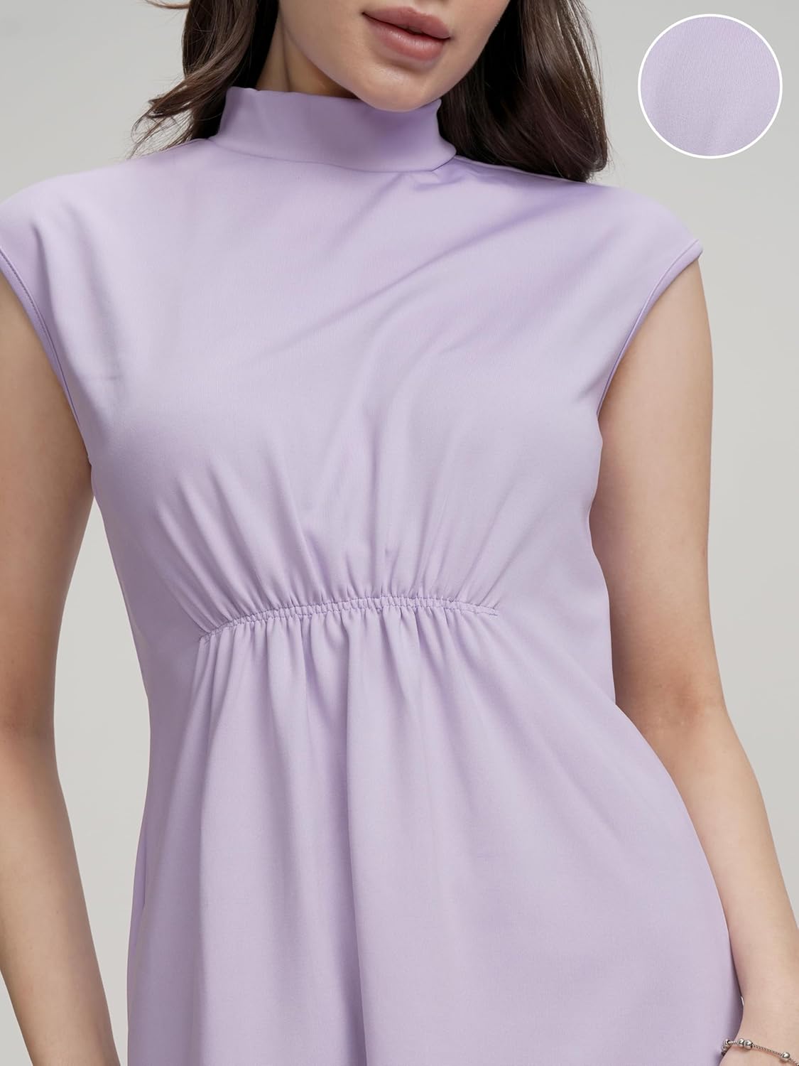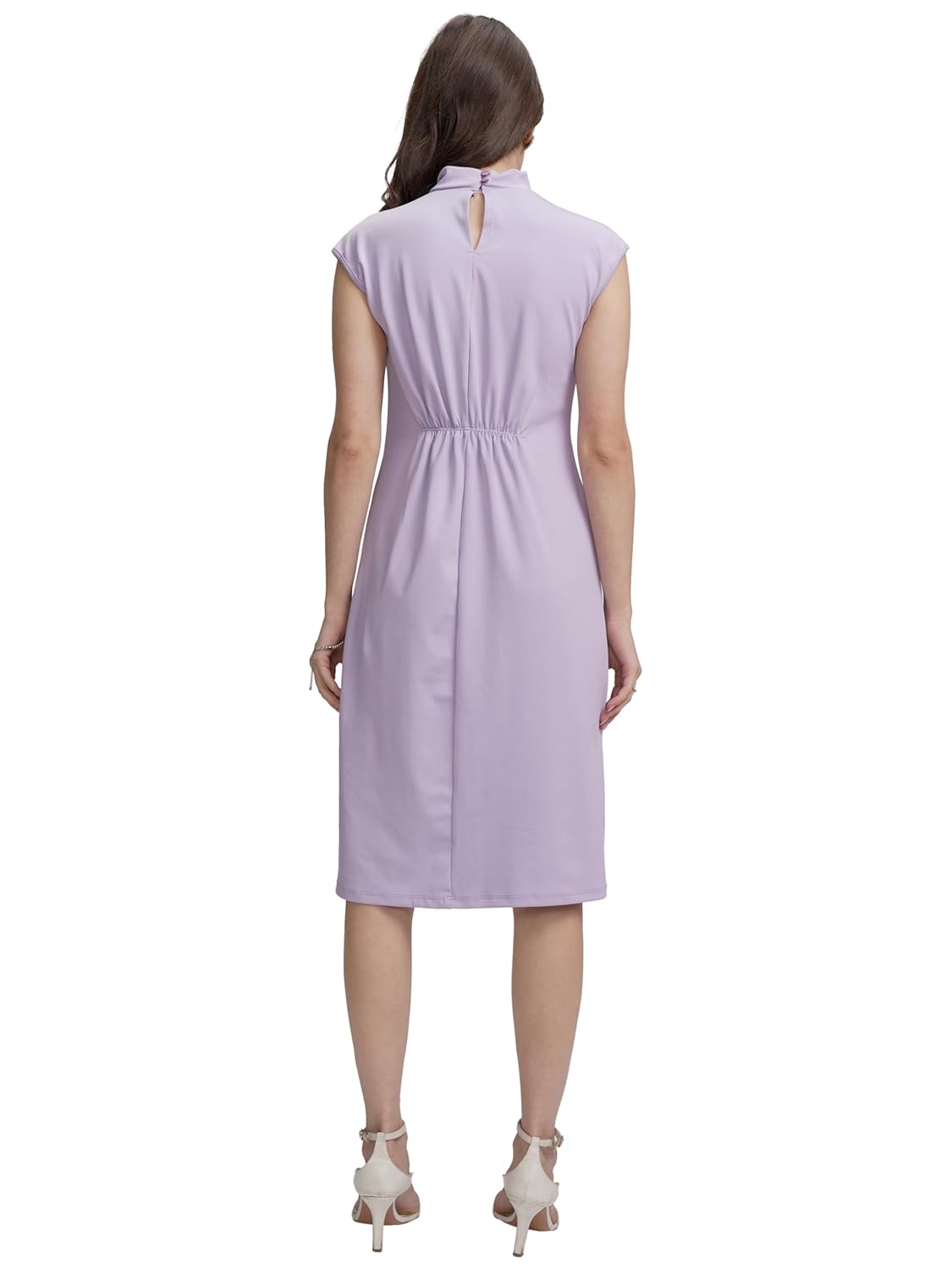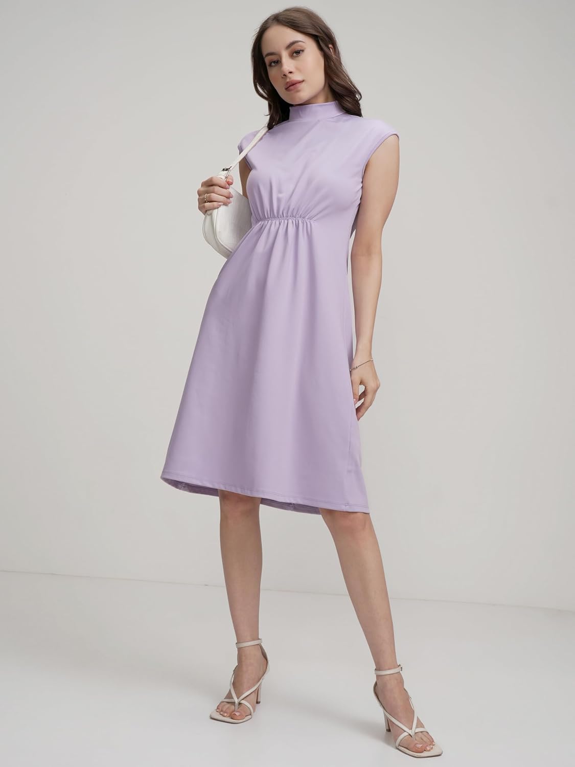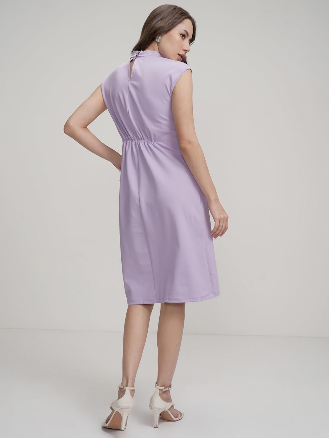 Tokyo Talkies Women Dresses for Women | Solid Color | Above Knee Dress | High Neckline | Front Gather | Elegant & Chic