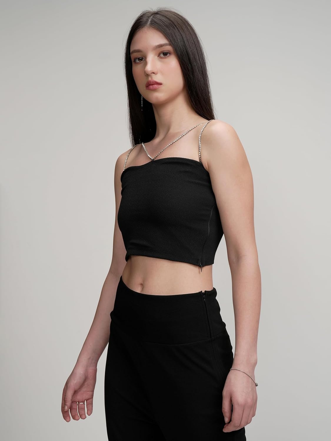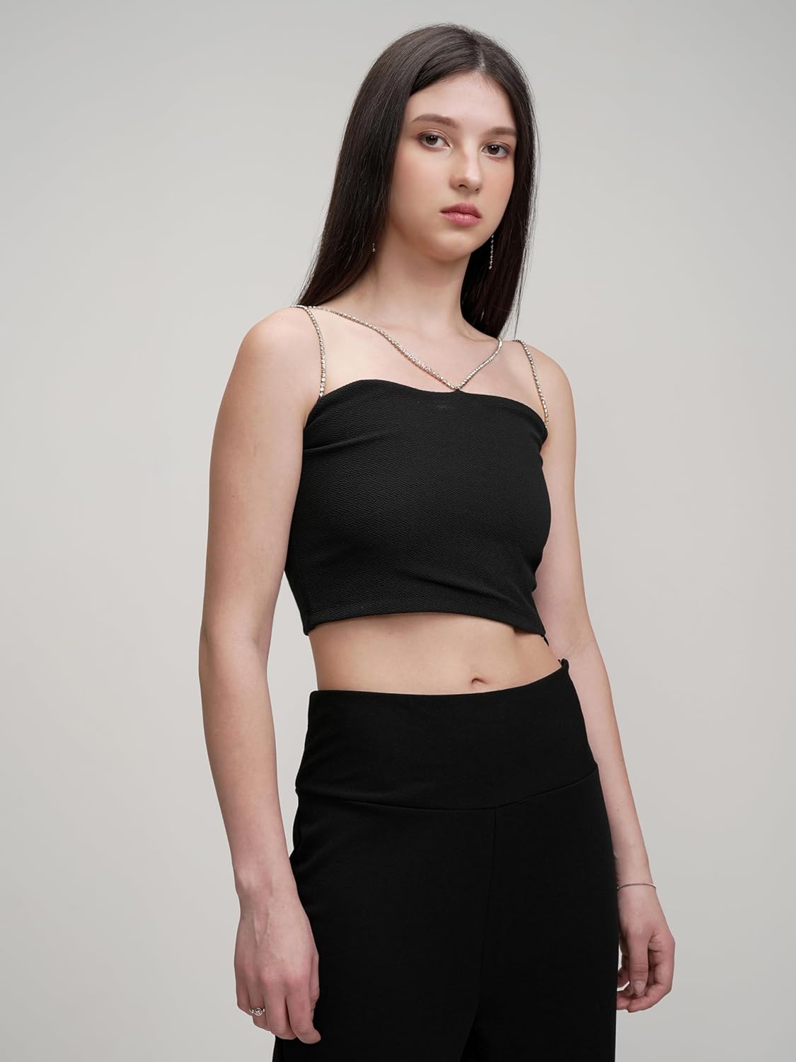 Tokyo Talkies Embellished Rhinestone Strings Bralette Top | Glamorous & Chic | Perfect For Parties & Night Out | Tops For Woman | Women Tops