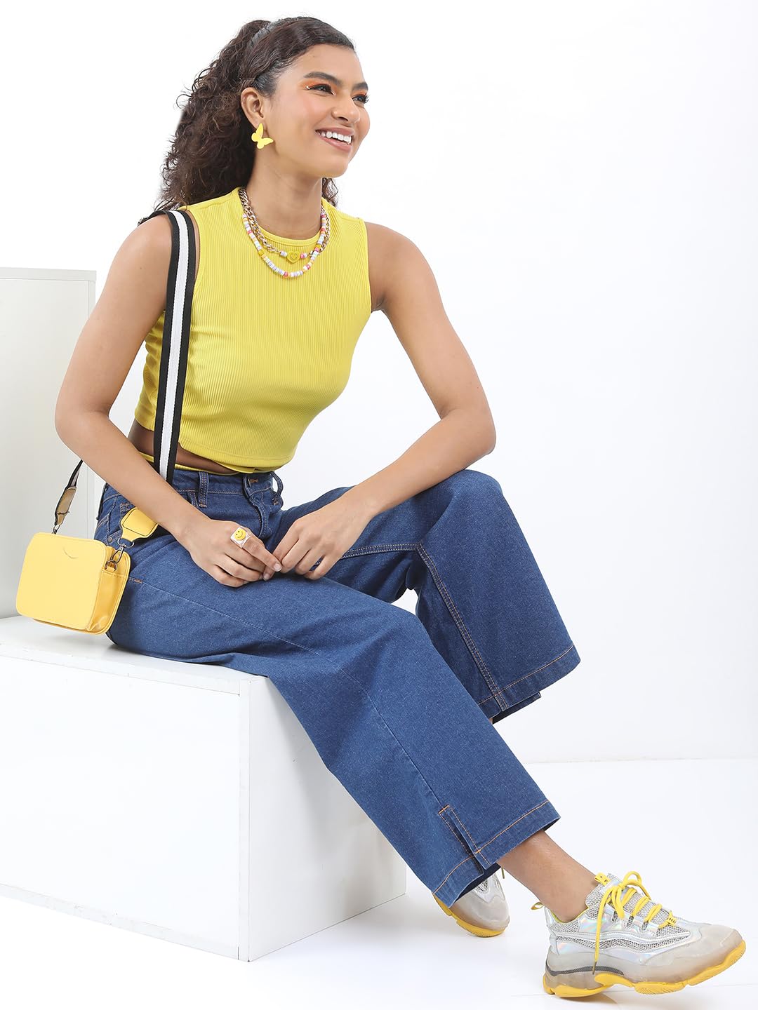 Tokyo Talkies Knitted Tank Crop Top | Criss-Cross Waist Strings | Sleek & Stylish | Perfect For Summer & Casual Days | Tops For Woman | Women Tops