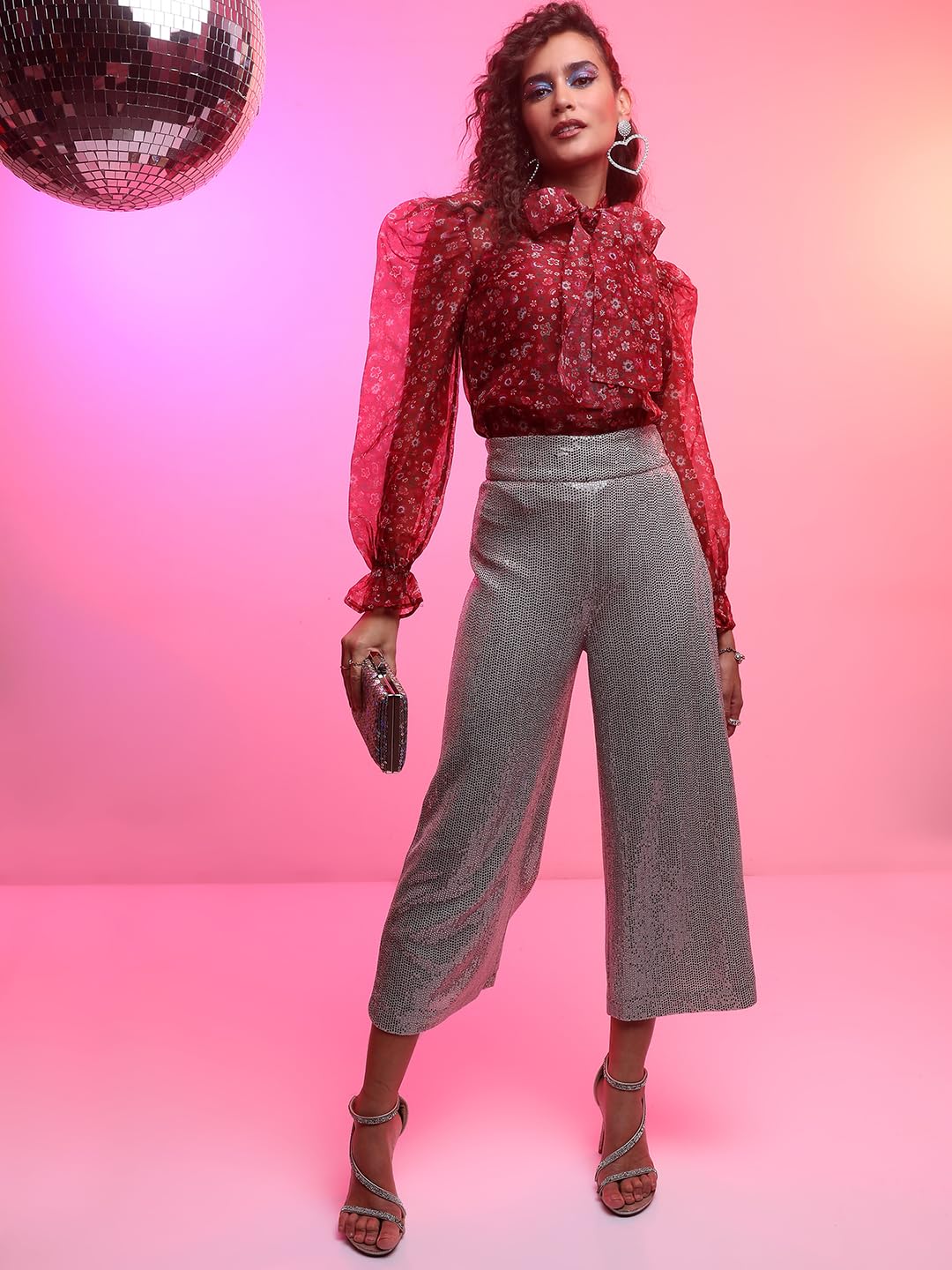 Tokyo Talkies Maroon Floral Printed Regular Top