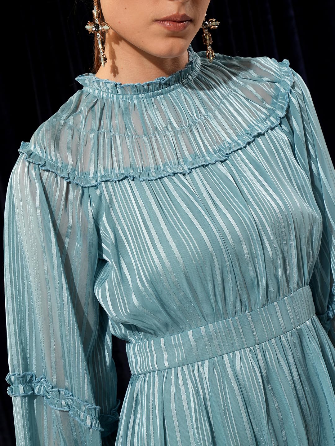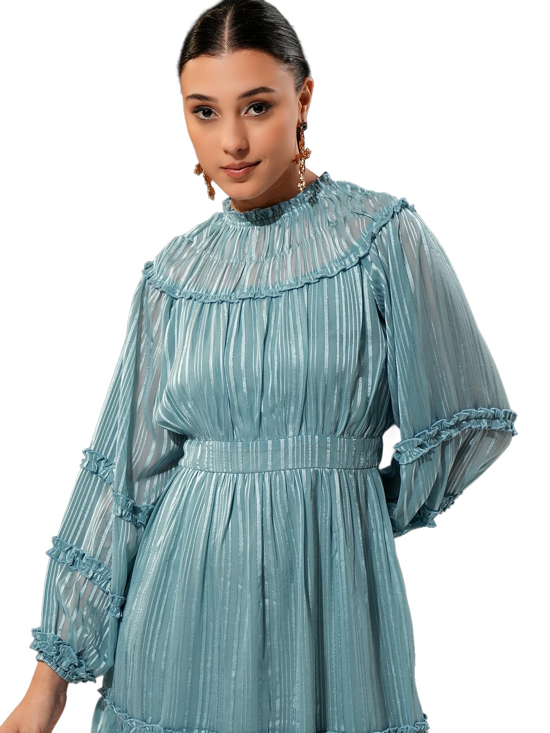 Tokyo Talkies Women Striped V-Neck Strappy Holiday Midi Dress