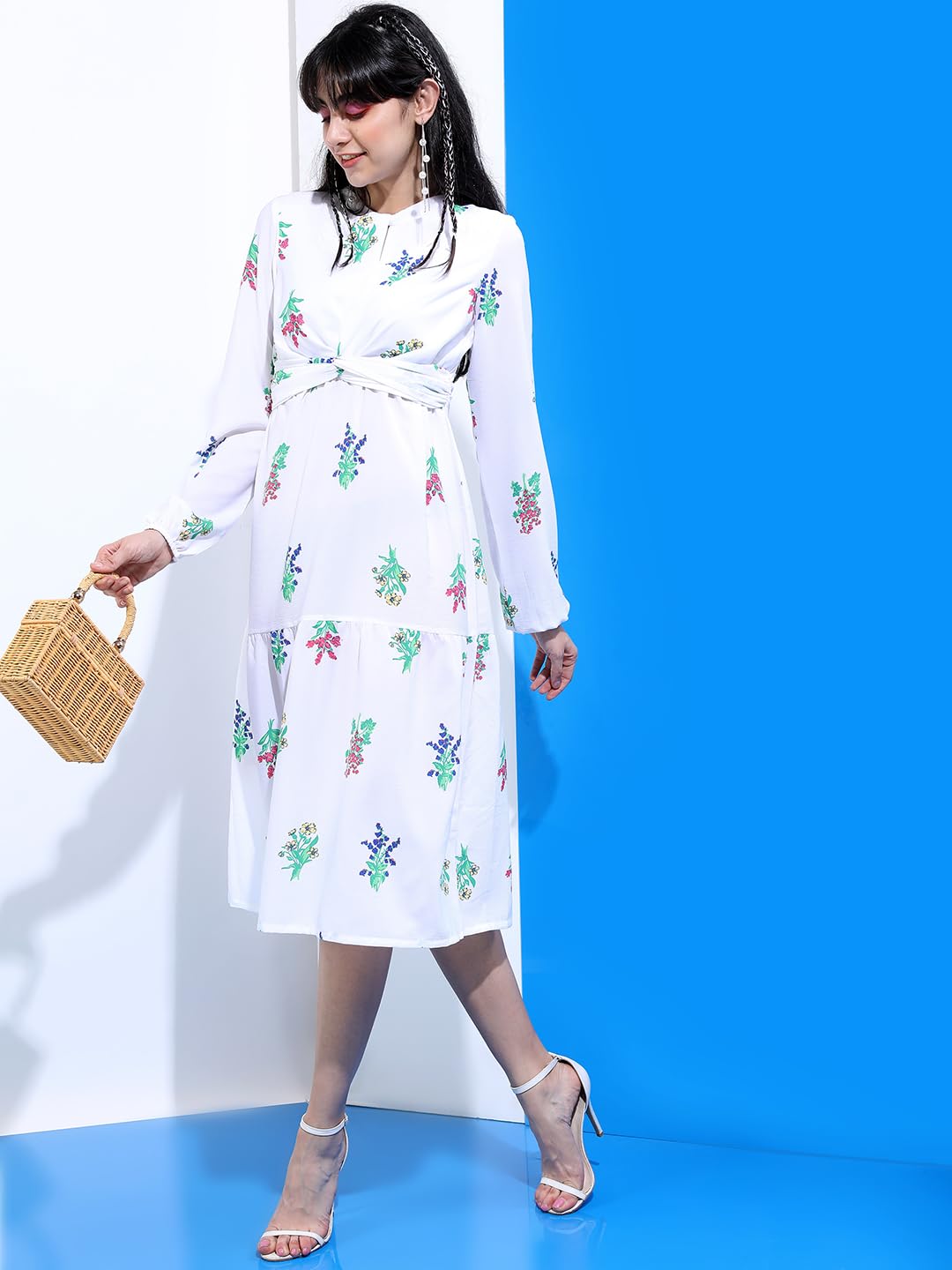 Tokyo Talkies White Floral Crepe A-Line Dress