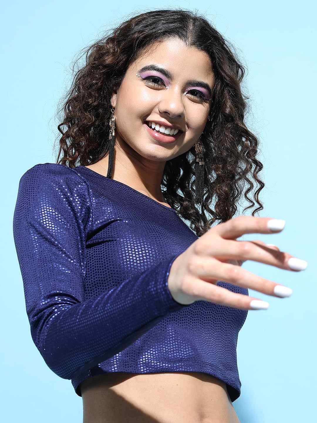 Tokyo Talkies Women Blue Solid Crop Top