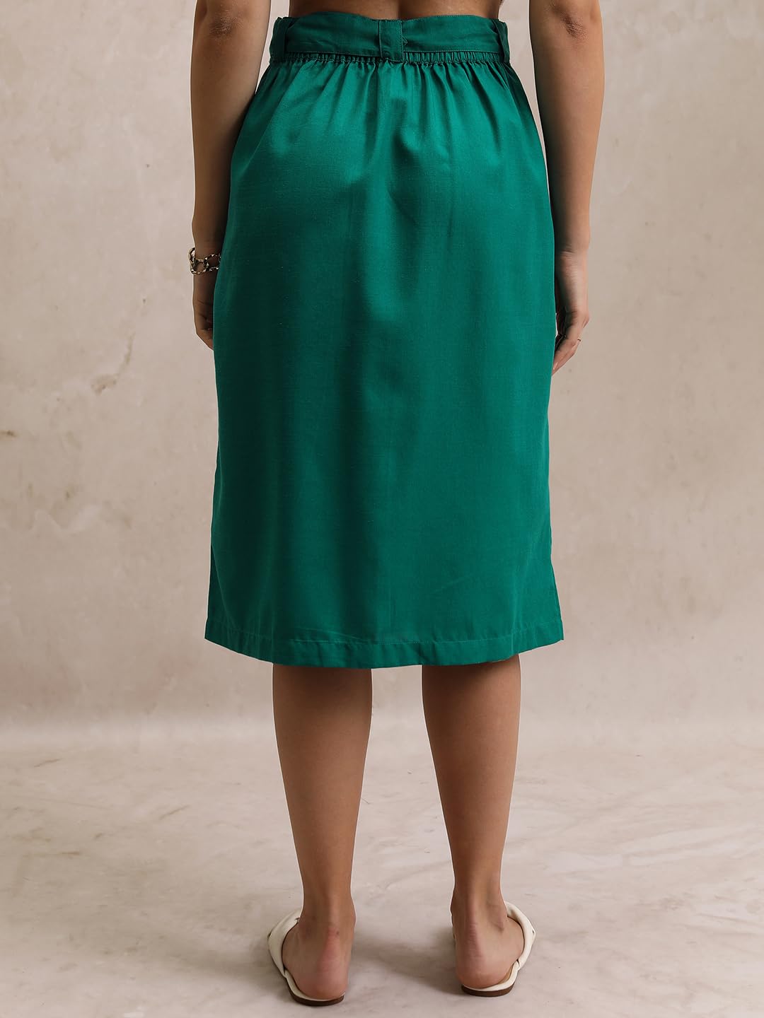 Tokyo Talkies Women Proud Peacock Solid Buttoned Midi Skirt