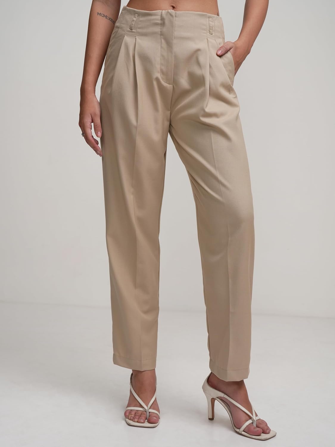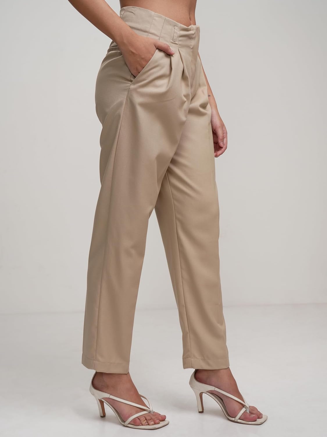 Tokyo Talkies Women Beige Trousers | Women Trousers | Trousers For Women | Women Trouser Pant | Trouser Pant | Women Pant