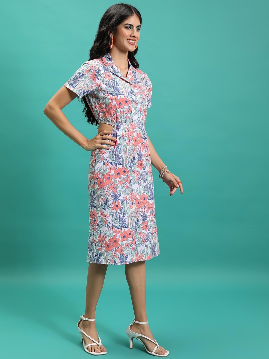 Tokyo Talkies Women Printed Cutout Midi Dress