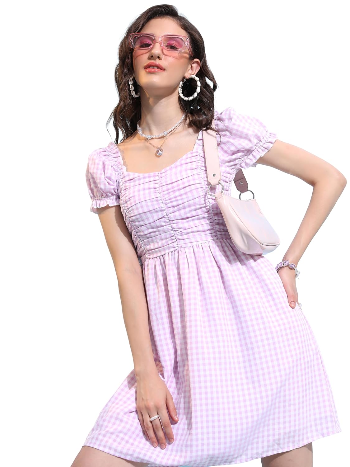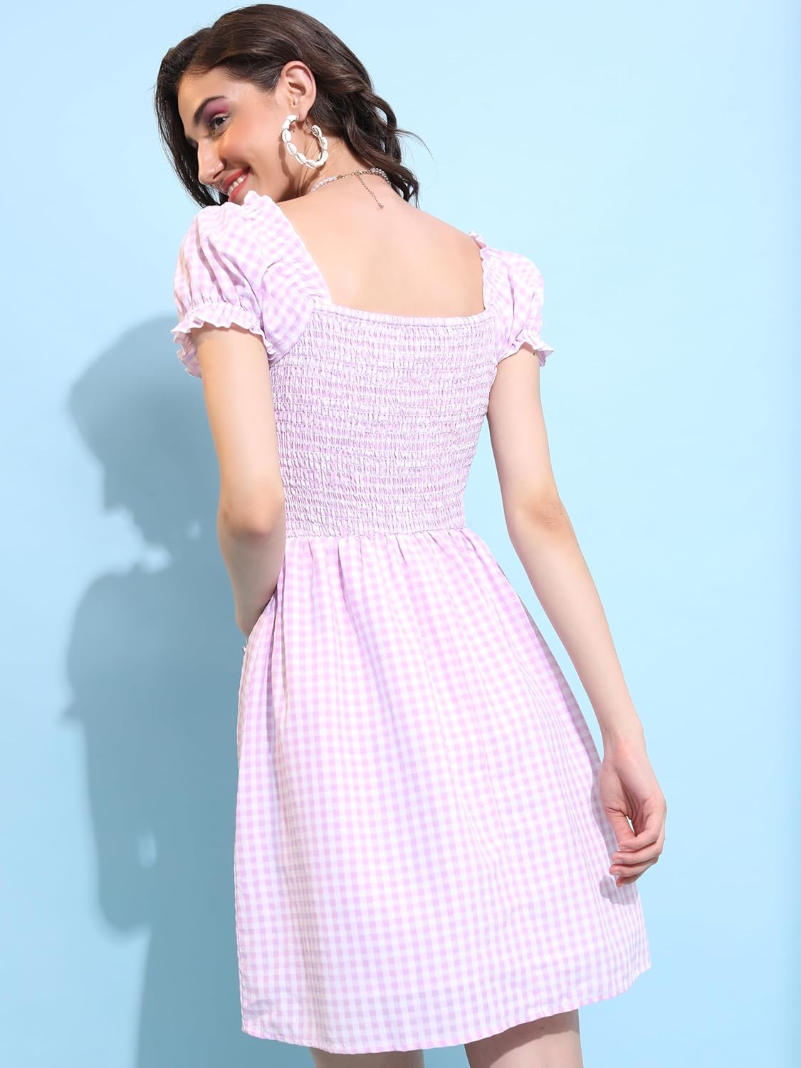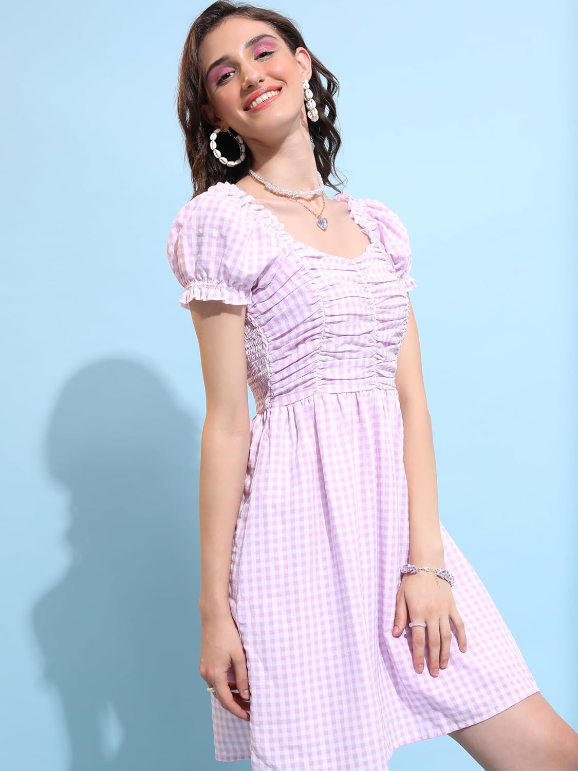 Tokyo Talkies Women’s Short Sleeves Sweet Heart Neck Checked Dresses | Stylish Dresses | Casual Dresses by Prixsa.com