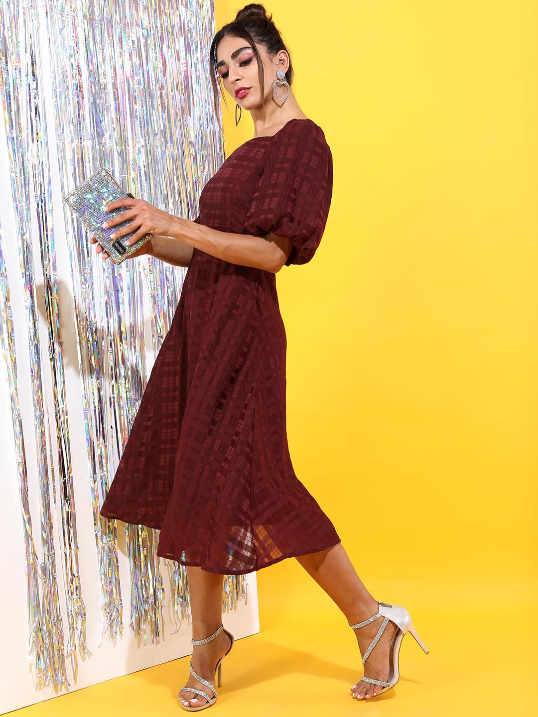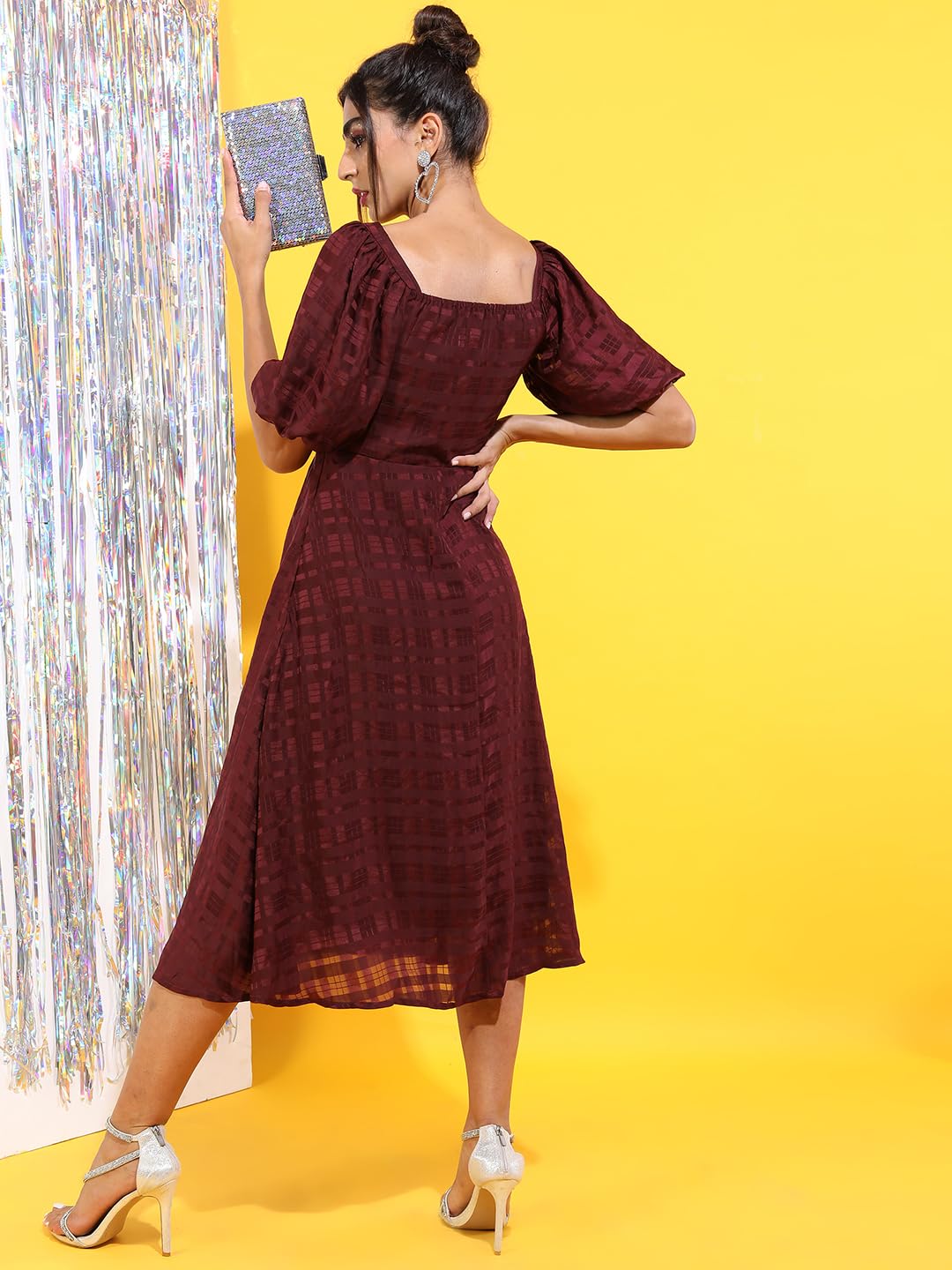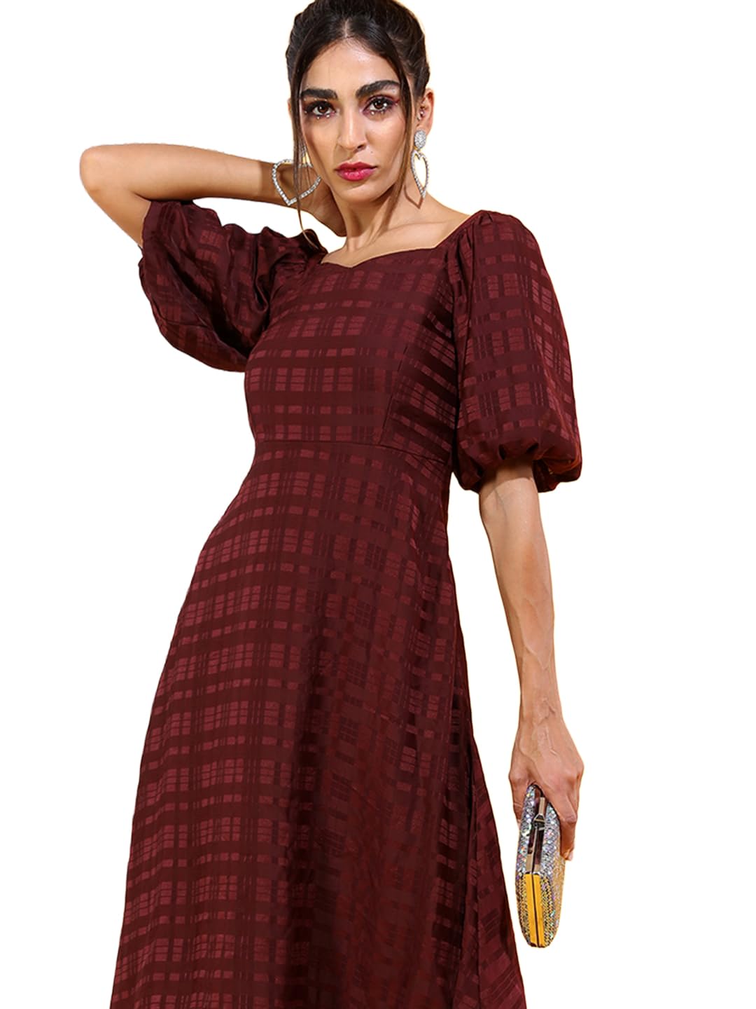 Tokyo Talkies Women’s Short Sleeves Sweet Heart Neck Checked Dresses | Stylish Dresses | Casual Dresses by Prixsa.com