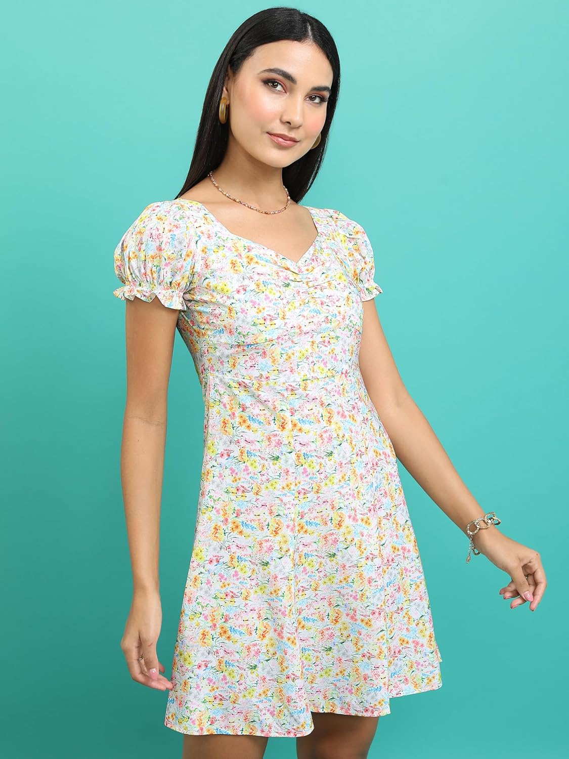 Tokyo Talkies Women’s Short Sleeves Sweet Heart Neck Printed Dresses | Stylish| Casual by Prixsa.com