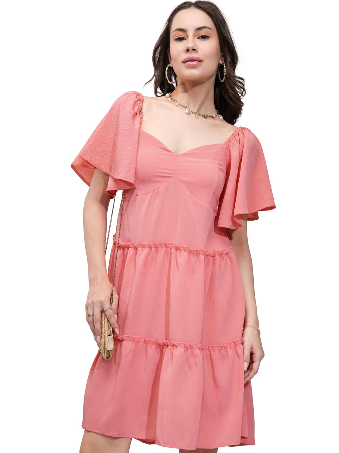 Tokyo Talkies Rose Flutter Sleeves Empire Mini Dress