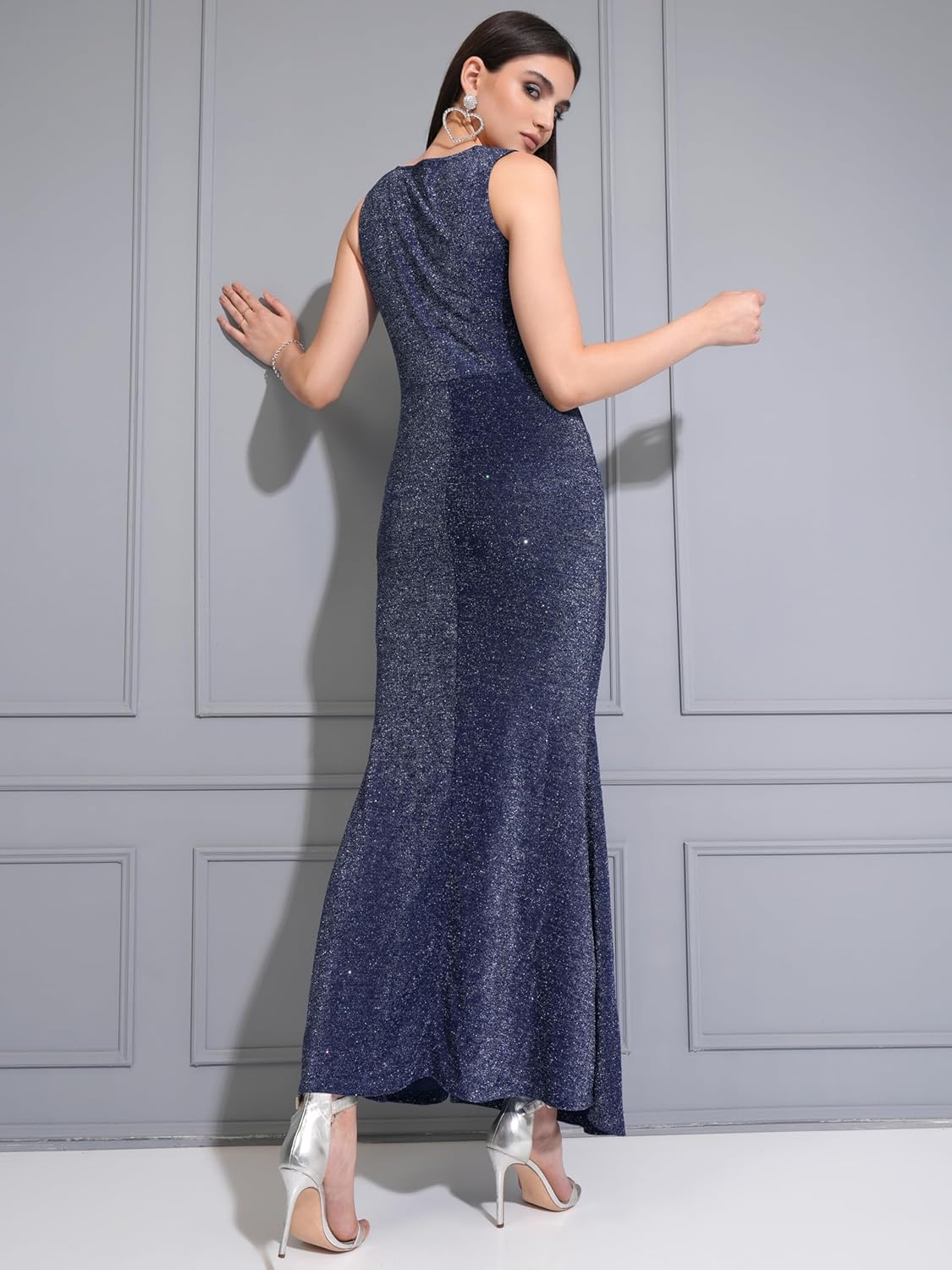Tokyo Talkies Women Shimmer Knit Waist Twisted Maxi Dress